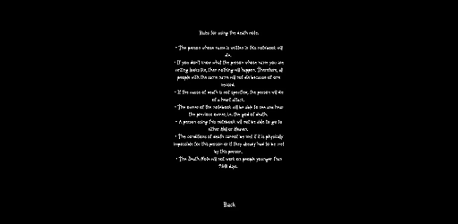 The game Death Note type anime is based on the popular anime "Death Note" (Death Note). By downloading this game on your android, you will be able to take the place of the main character - Light Yagami. Write down the name and cause of death of the person. Kill bandits and enemies. Ryuk will be happy if you join the God of Death and help him fulfill his mission. Don't forget that he likes apples, and don't be alarmed if you suddenly start seeing him...