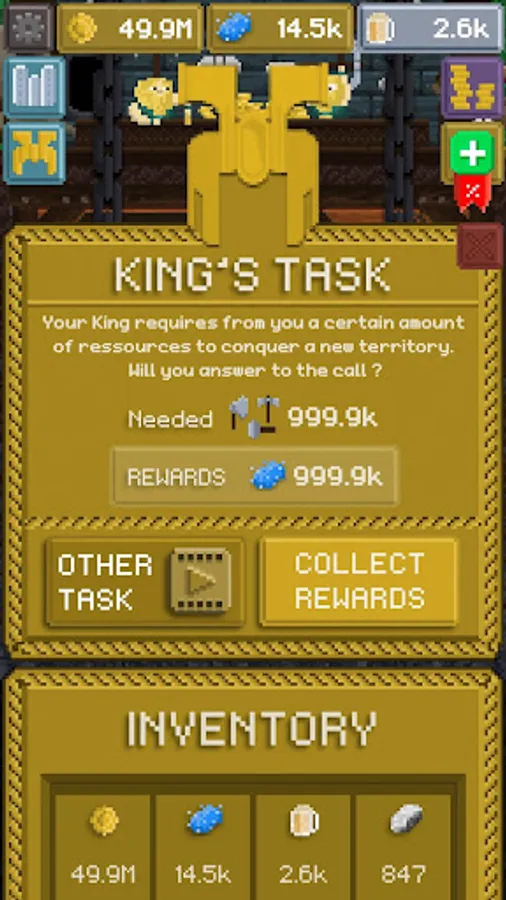 While idle, your fortress will produce coins. When you come back, you'll be able to improve prodution and gain more and more !