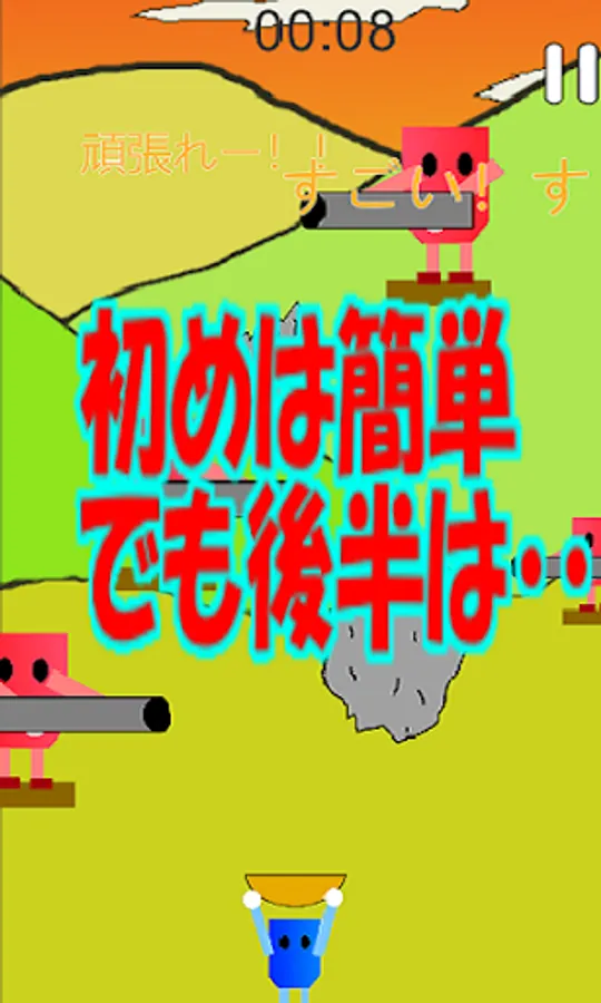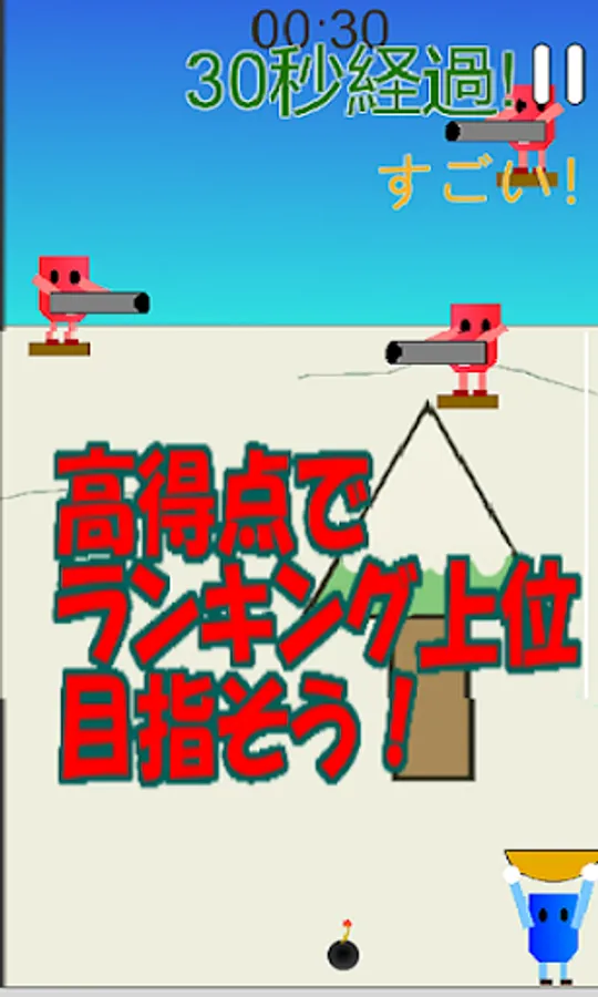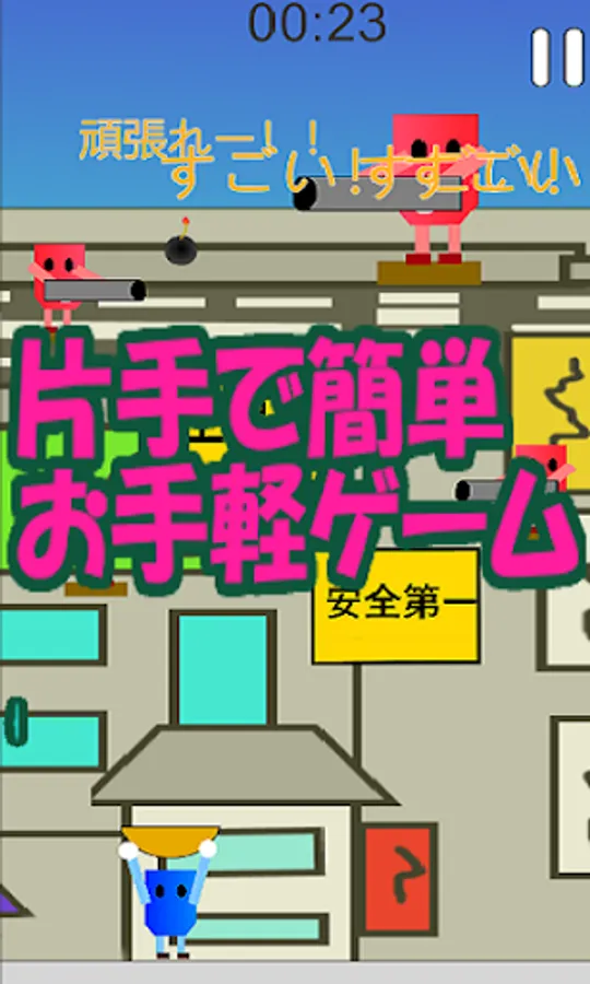 You move E-KUN from side to side, and catch bombs falling in sequence.