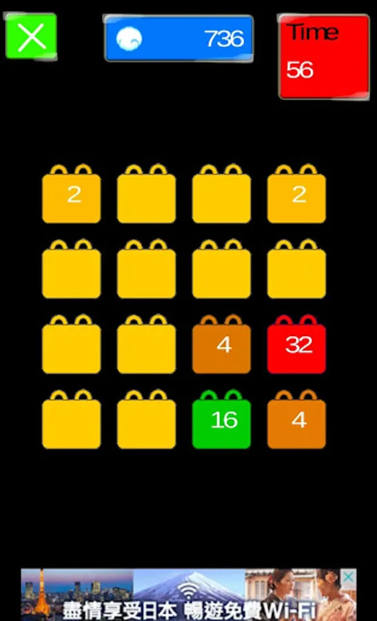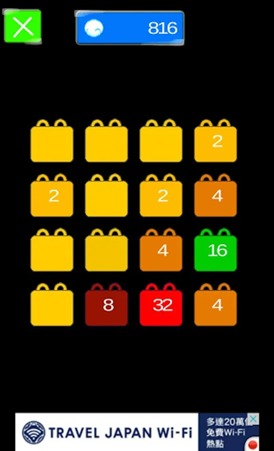 2-> 4-> 8-> 16-> 32-> 64-> 128-> 256-> 512-> 1024> 2048.