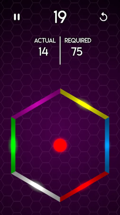 1. Launch the ball against the hexagon's side of the same color to earn points.