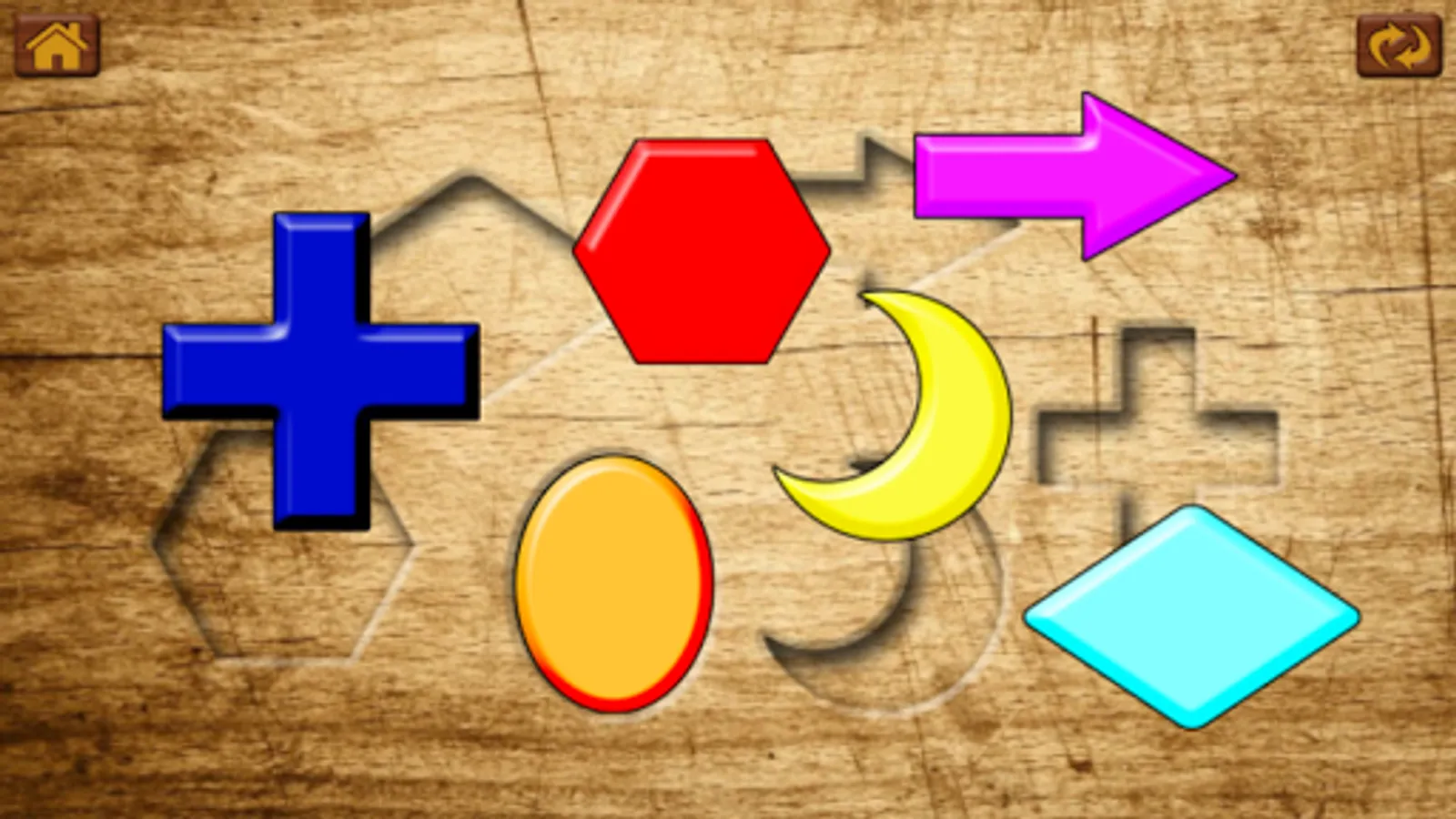 A puzzle game for young children. Let your child learn the names of shapes, the letters of the alphabet and numbers in a fun and engaging way. Drag and drop the puzzle pieces into the fitting holes. Practice will let your child learn in next to no time. (English)