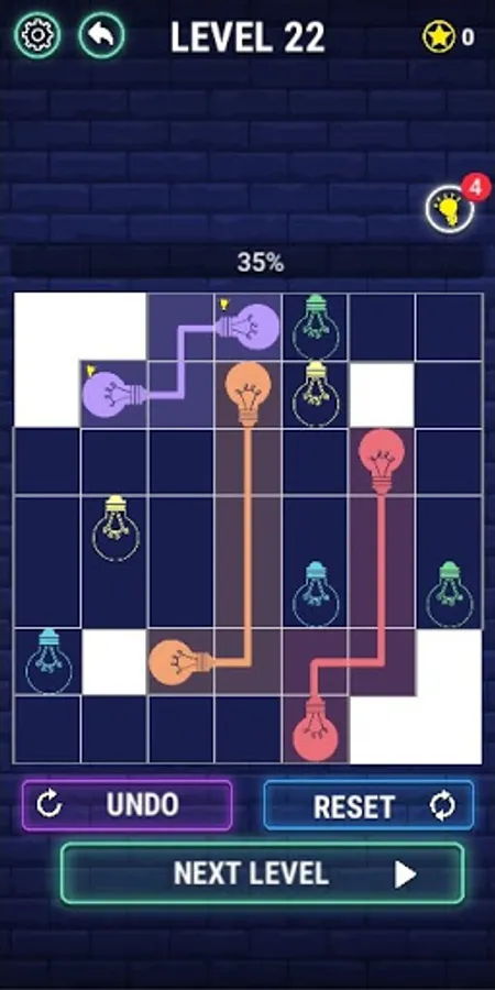 Connect the same color lamps with a line to make them shining and make sure to cover the entire board then you can pass a level successfully.