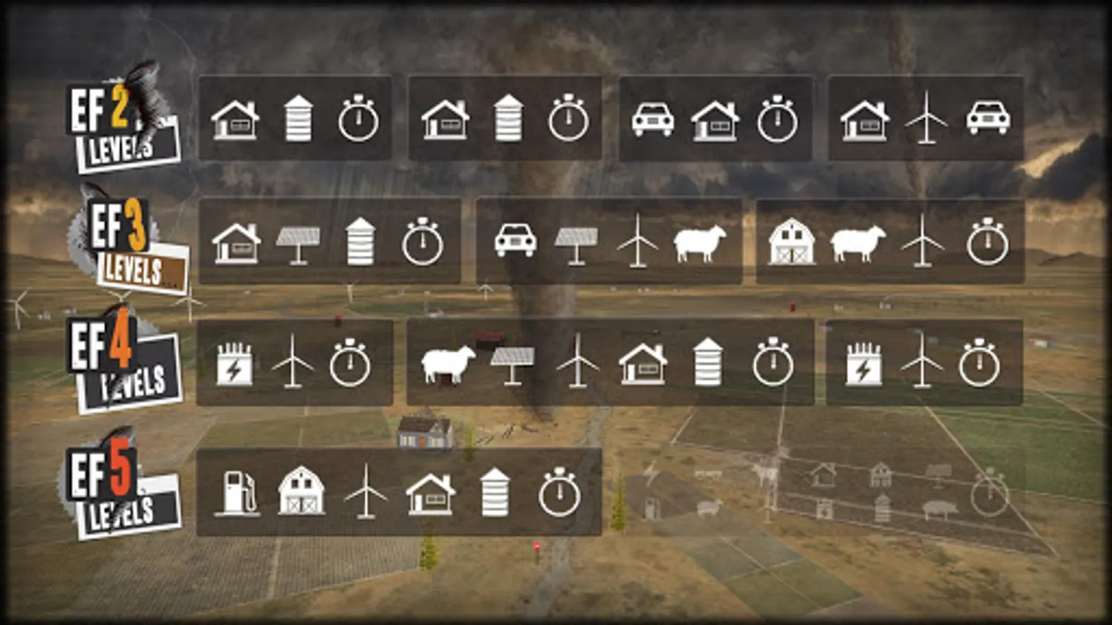 Take full control of this power and destroy as many things as possible, grow from an EF2, EF3, EF4 until you become a gigantic EF5 tornado that eats up buildings, trees, cars, barns and anything else unlucky enough to be in its path!