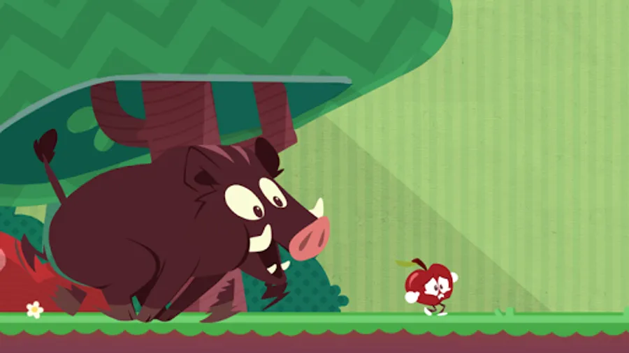 You play an apple just fallen from his tree, who must flee a boar who wants to eat you. On your way, you must avoid maggots and seagulls who also want to eat, but also other obstacles that slow you down, and gradually brings you closer to the Wild Boar.