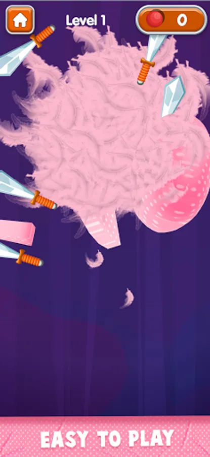 Throw the knives into the pillows to burst them. Slash the yarn balls carefully & do not hit the knives. Timing is the key in this game!