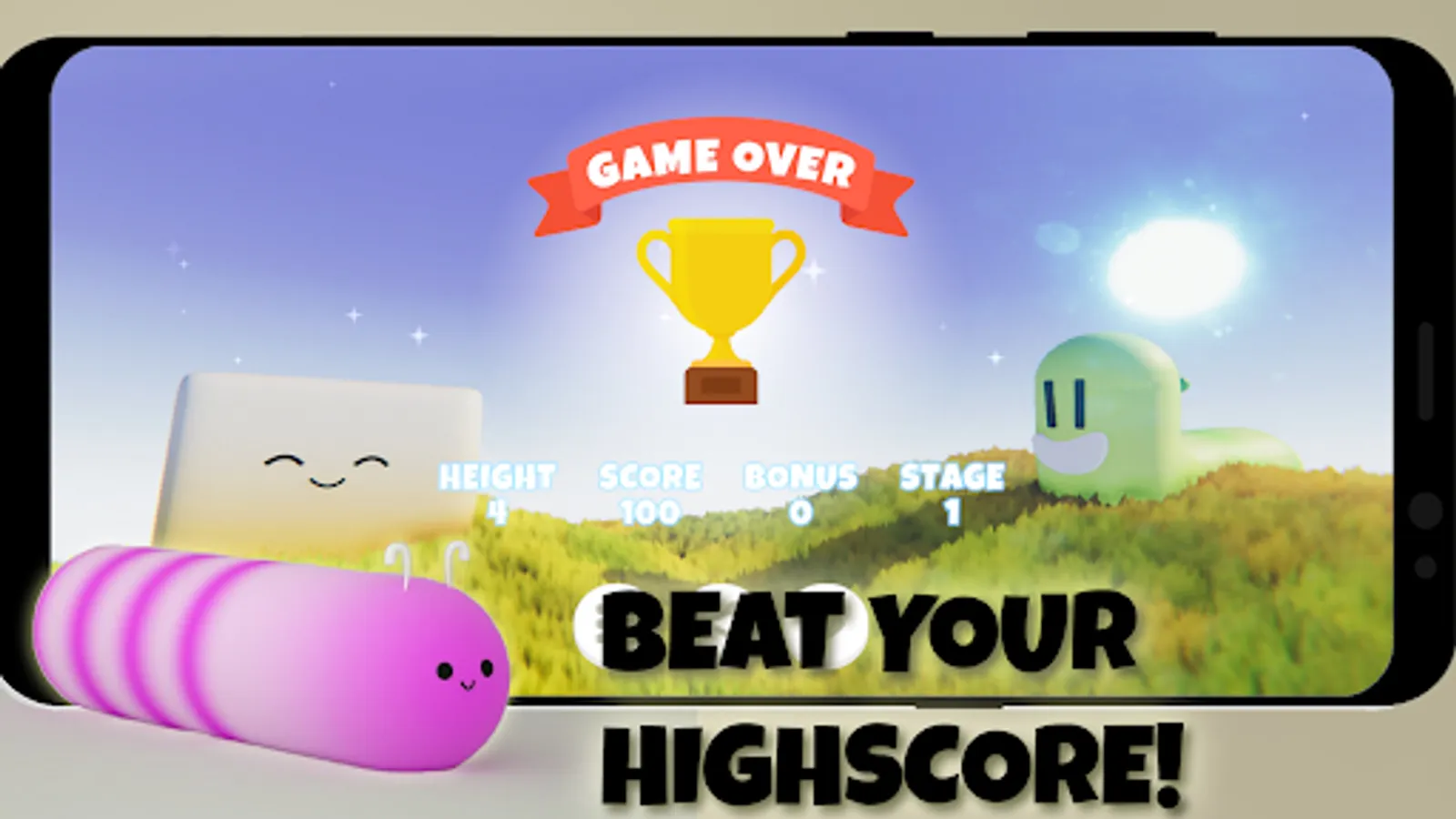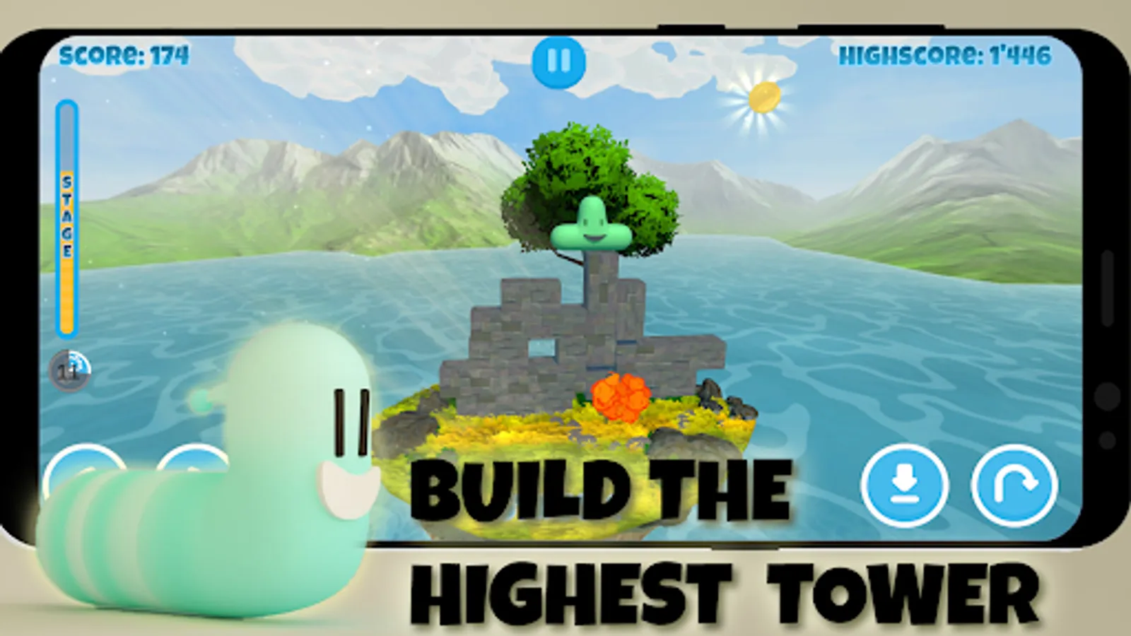 Each few meters you will pass a new stage that will be harder and harder. The grubs will need to build the perfect tower with 3d tetris shaped grubs.
