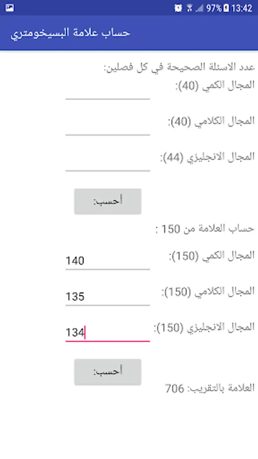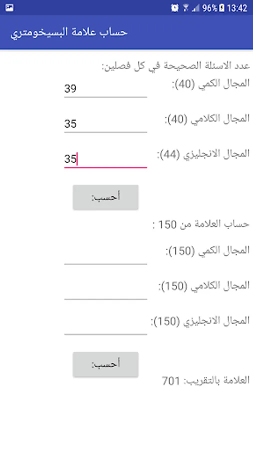 * The possibility of calculating the mark by the number of correct questions in each chapter
