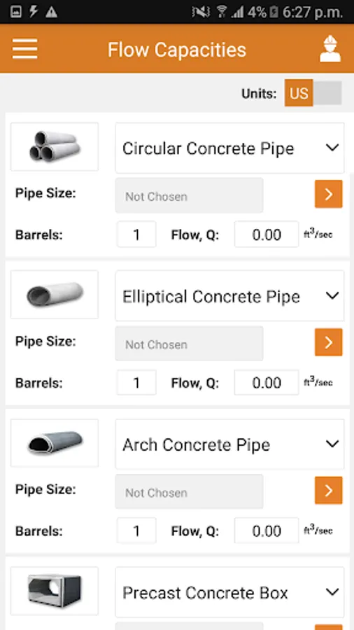 In order to evaluate possible alternatives in either pipe geometry or material, use this app to compare the hydraulic flow capacity among various concrete pipe including round, elliptical, arch and box sections with round thermoplastic and corrugated metal pipes.