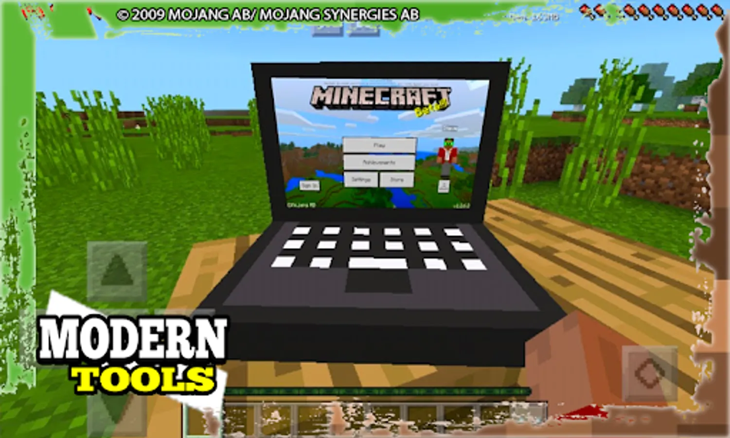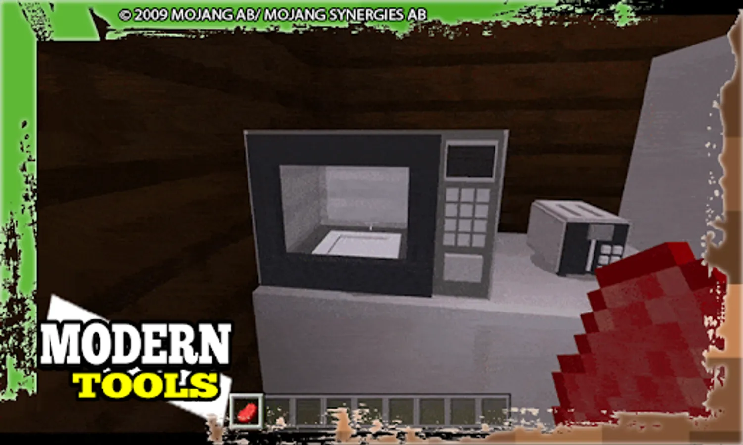 This is Modern Tools, Furniture Mod for Minecraft Pocket Edition it brings to the game over 300 furniture, items and decorations for your interior design. Various selection of kitchens, bedrooms, restrooms, bathrooms, beds, toilets, shelves, offices, playrooms, rooms, for your home in the MCPE (pocket edition) world. One of the nicest things in our new mod for Minecraft PE is the "youth" furniture. Various game tables, computers, phones, laptops with games running on them, you can play Minecraft in the pixel world.