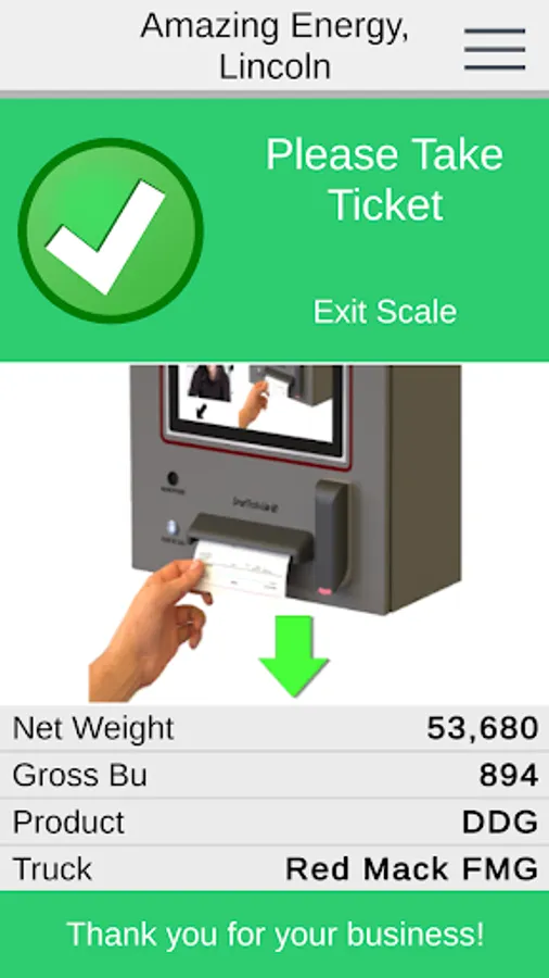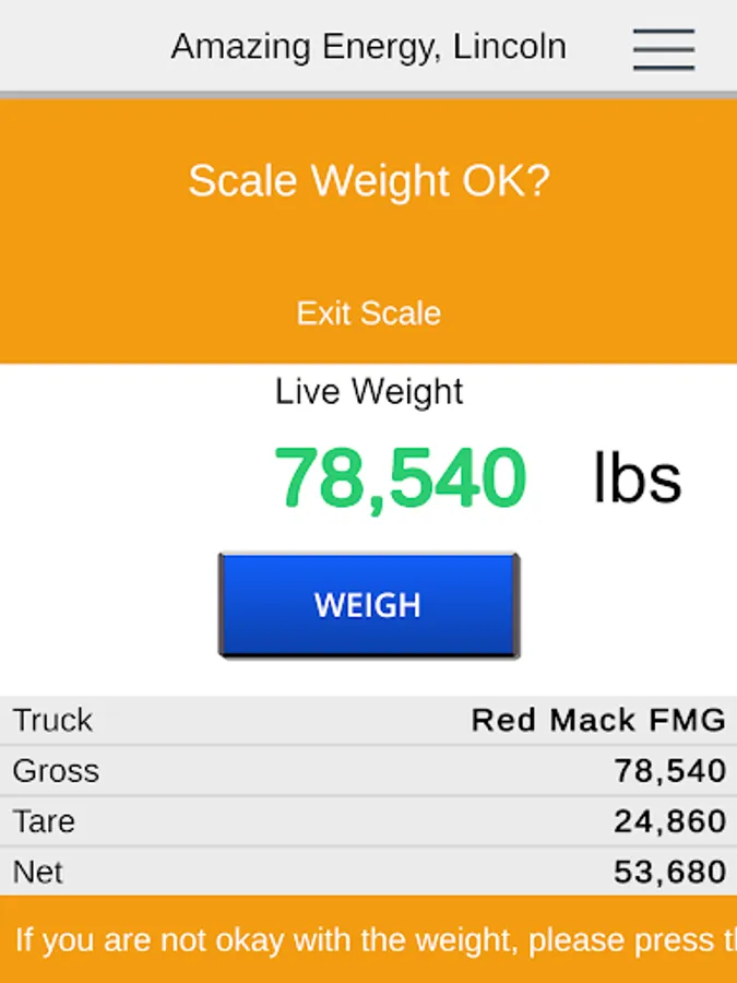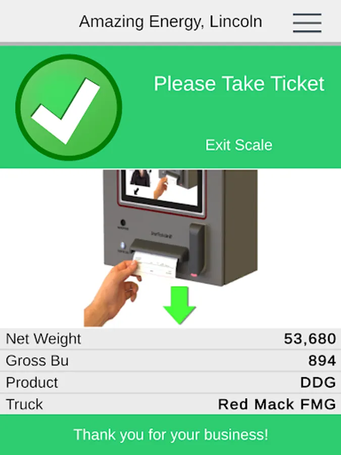 The CompuWeigh mobile app lets drivers interface with CompuWeigh equipment at grain, feed and fertilizer facilities. Drivers are given clear and consistent graphics to guide them through their transaction.