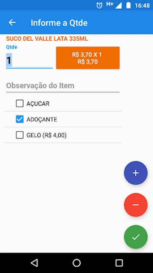 • Optional per item with / without addition and off the total