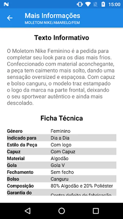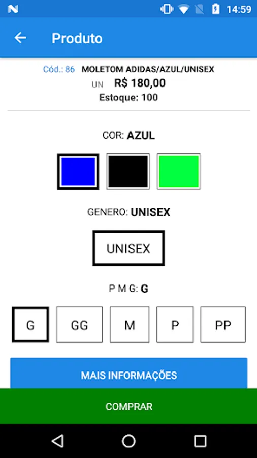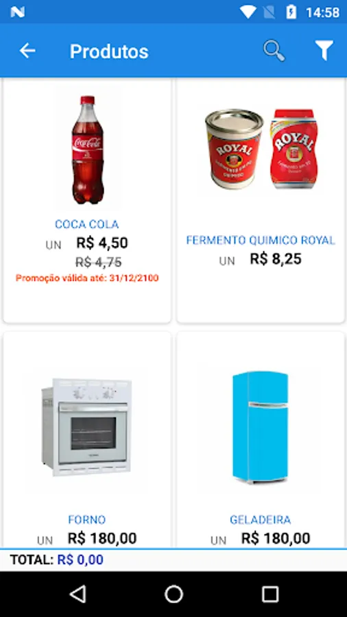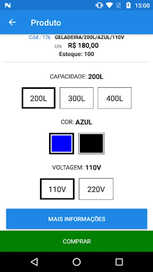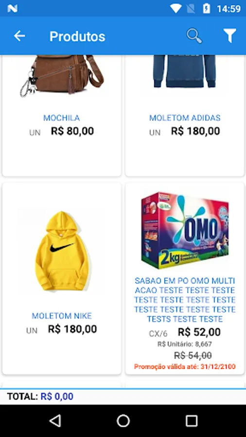 * Layout 2: List of products, promotion, sale by unit or box, more product information with description and technical sheet, filter by category, selection boxes for color, size, voltage and others depending on the type of product;