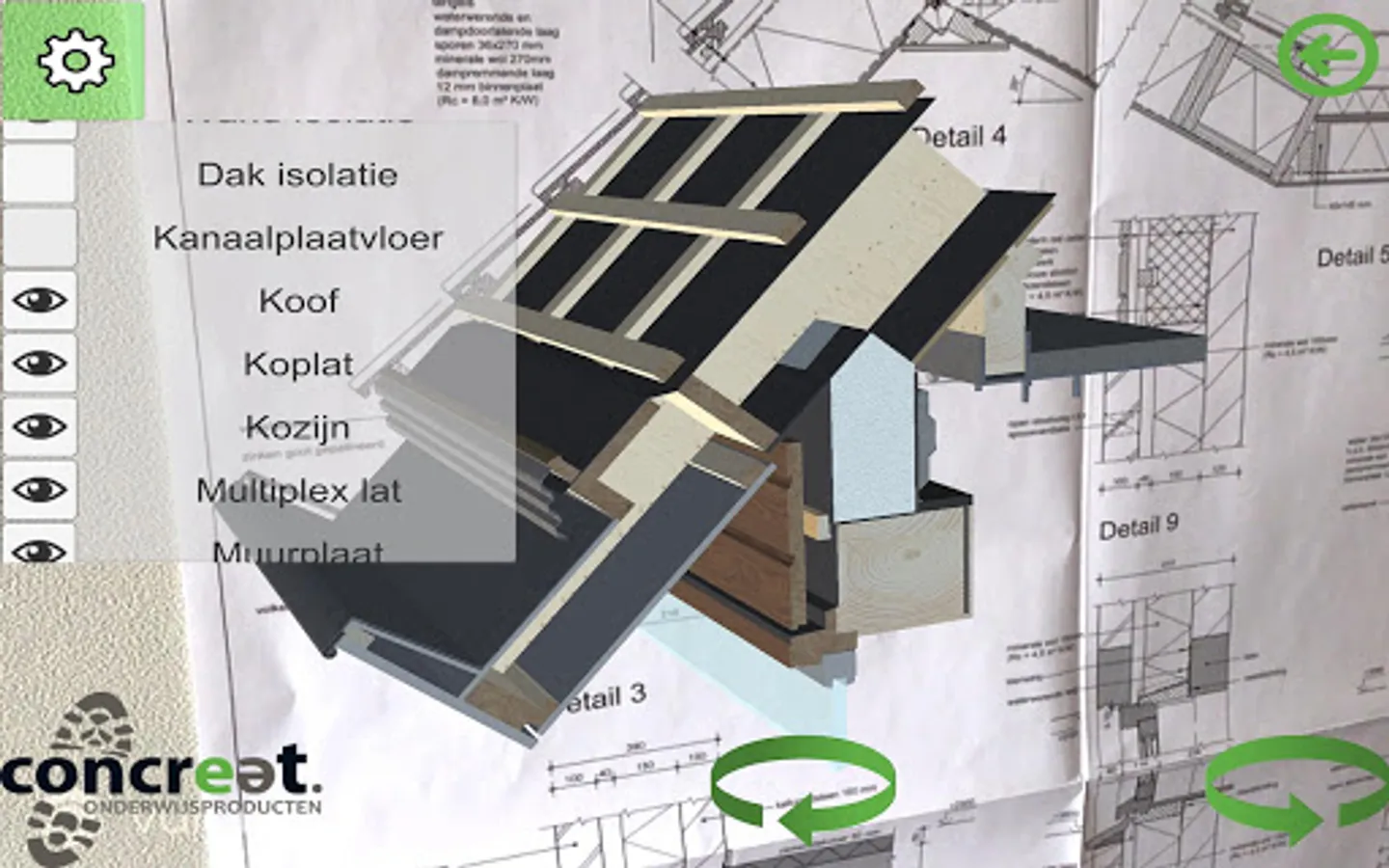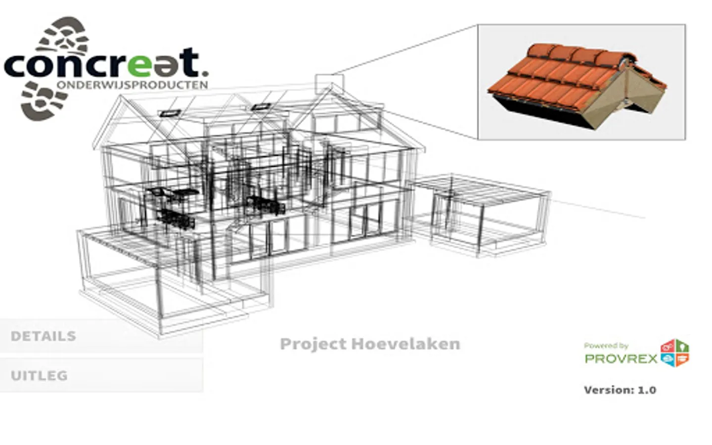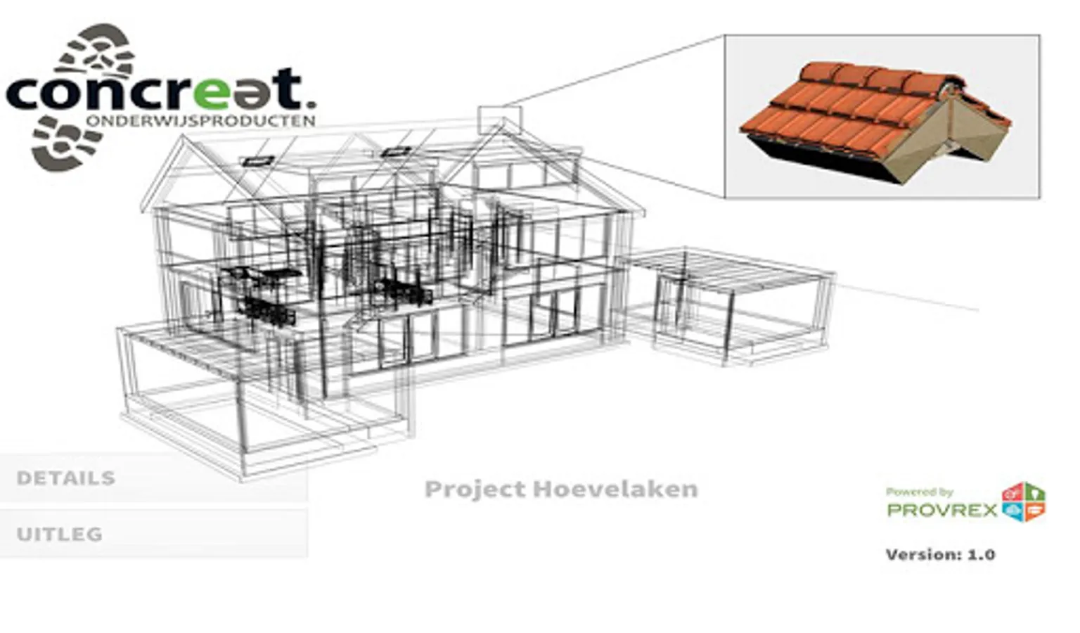 The Concrete AR detail app for project Hoevelaken is an AR tool that, in combination with the building plan, learns and understands the details. The details can be rotated and dismantled so that the construction can be examined in detail and students learn to understand the architectural details better and faster.