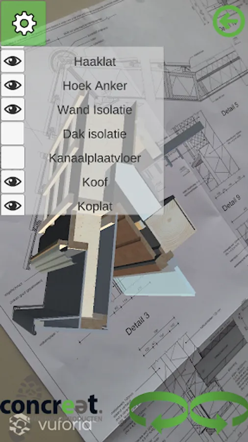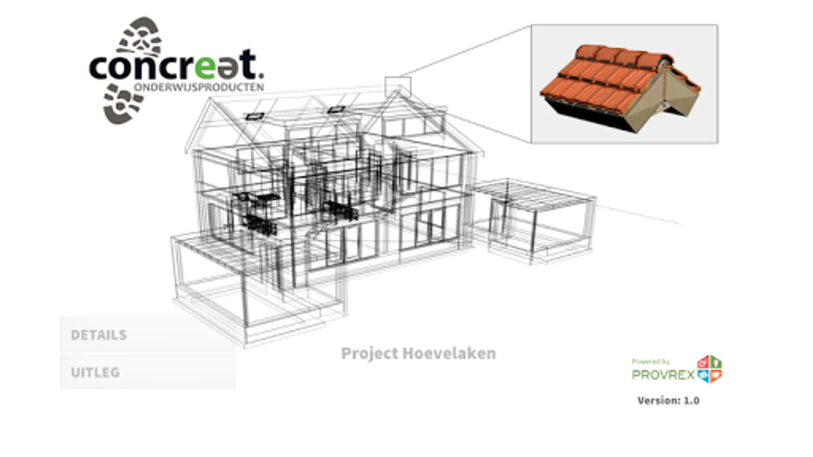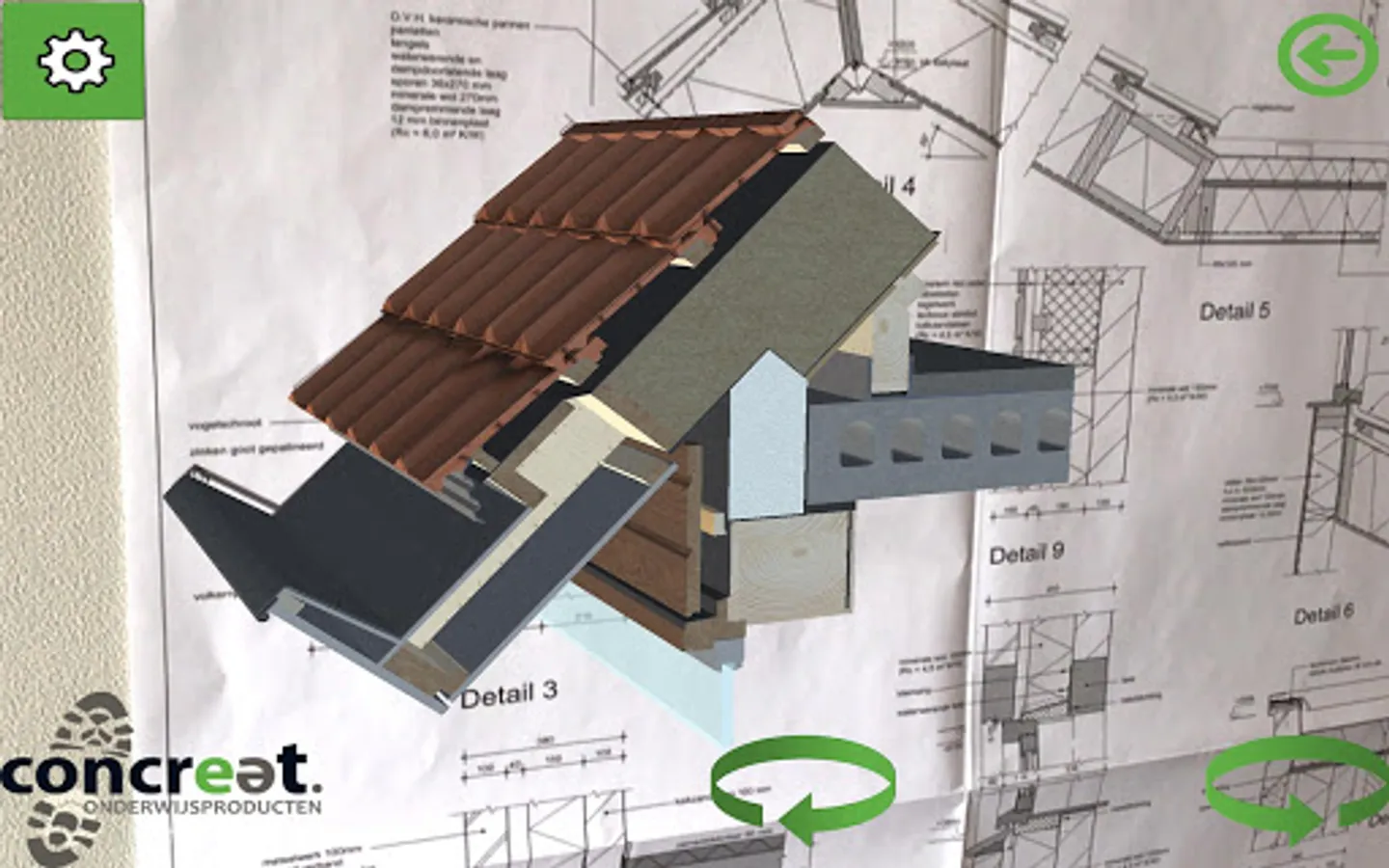 The Concrete AR detail app for project Hoevelaken is an AR tool that, in combination with the building plan, learns and understands the details. The details can be rotated and dismantled so that the construction can be examined in detail and students learn to understand the architectural details better and faster.