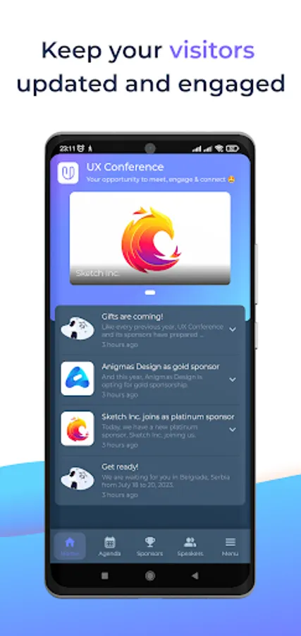 The on-site app for event or conference visitors. Confi makes managing change, keeping visitors informed and promoting sponsors easy and fast. The ability to change themes and fonts makes sure Confi always matches your visual identity.