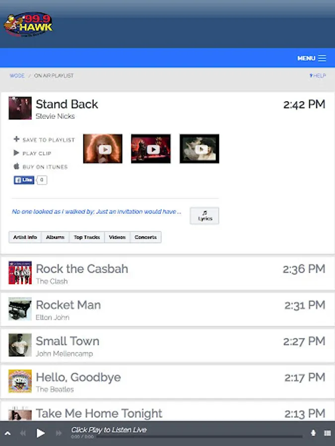 Now you never have to be without your favorite radio station. 99.9 - The Hawk, Classic Rock of the 70s, 80s and more is proud to present our OFFICIAL radio app!