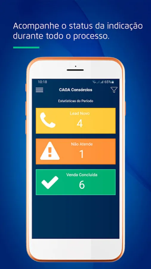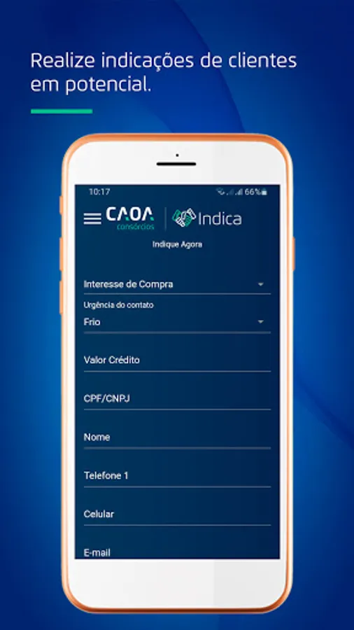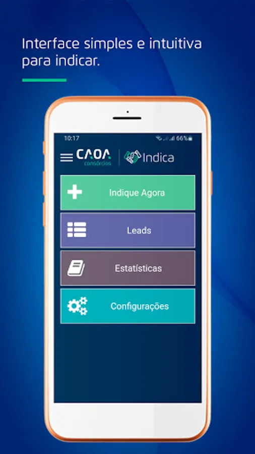The CAOA Consórcios Indica app aims to create a channel for receiving referrals from potential customers (leads).