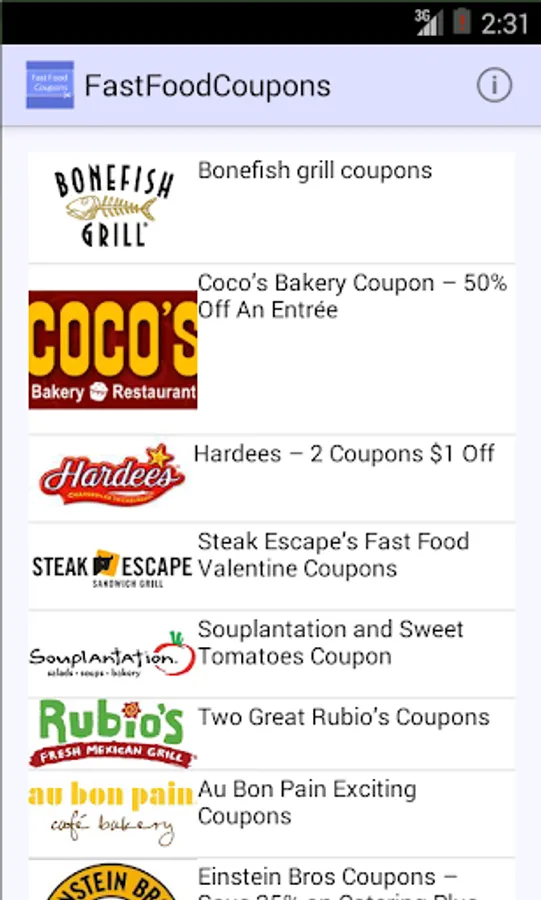 Are you looking for saving your money when you buy food from these restaurants? Want to find the best free coupons to save a lot of money while eating your favorite dishes? If your answer is yes, then you will have to download and install Fast Food & Restaurant Coupons on your Android smartphone or tablet because it is the perfect app for you right now.