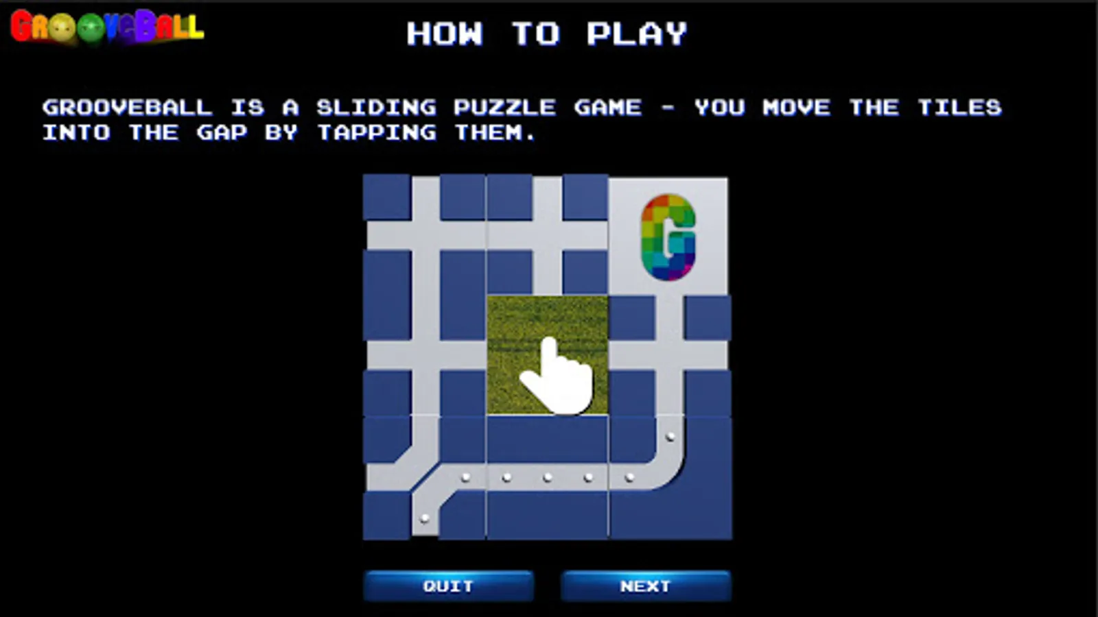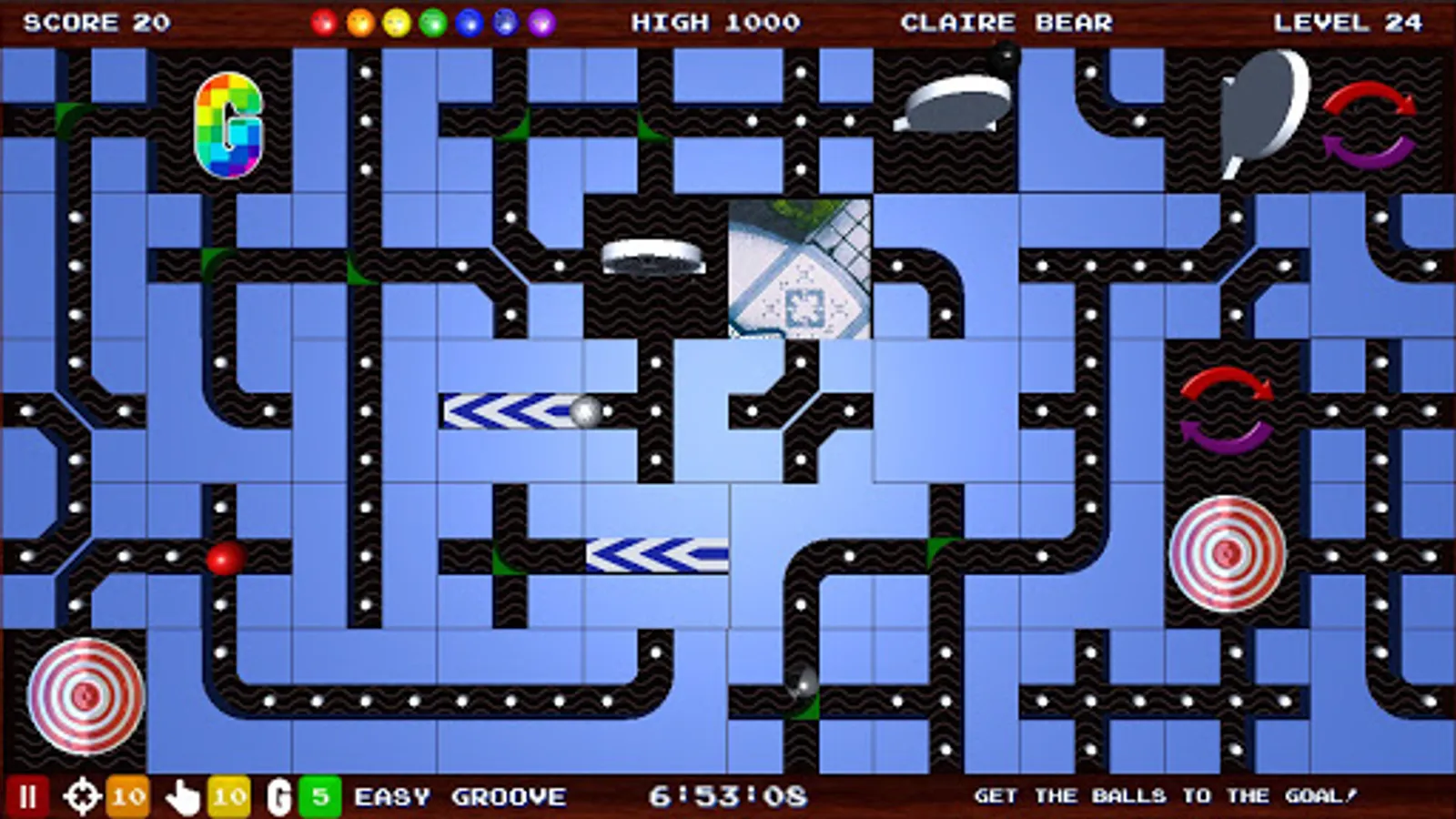 GrooveBall is a sliding puzzle game designed for tablets in a retro arcade style - a brain teaser with non-stop action.