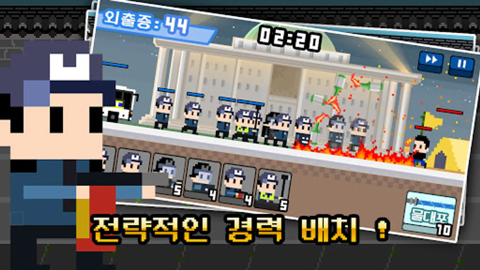 -Chae Jeung Crew: It lowers the attack power of nearby protesters, but cannot attack by itself.