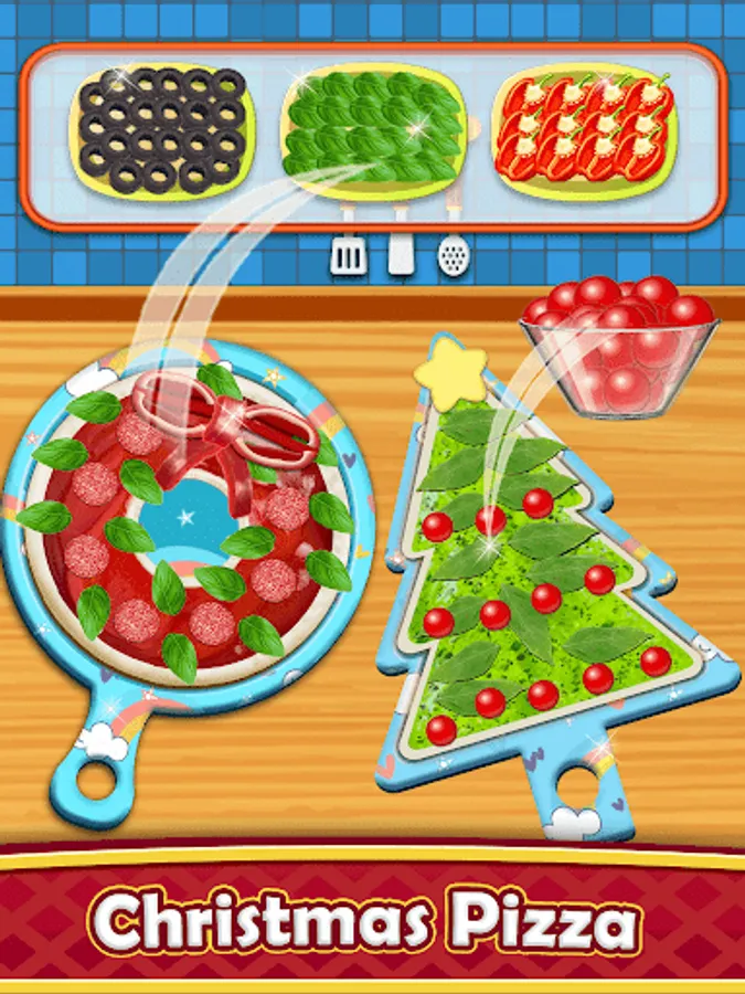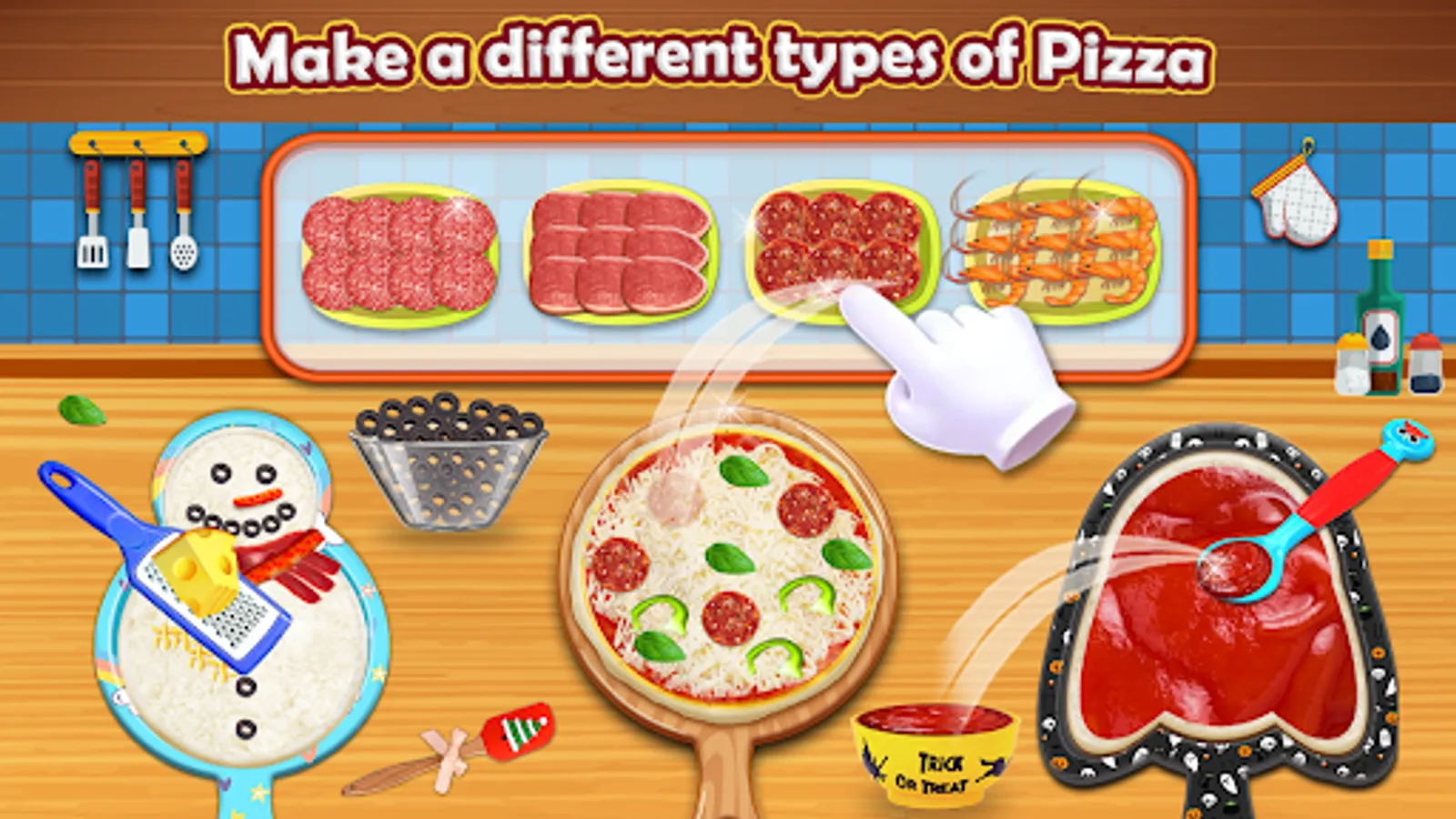 🍕 Make dough, roll to get a different shape pizza like round, square, Christmas and halloween shape