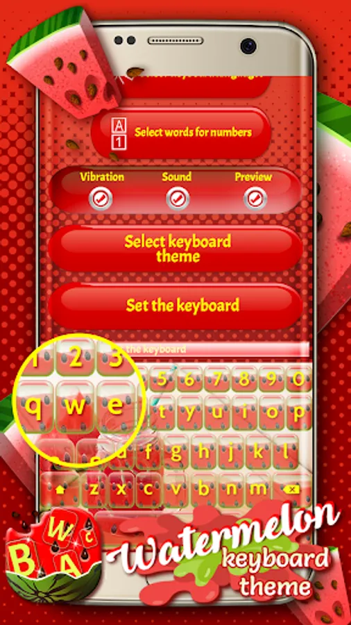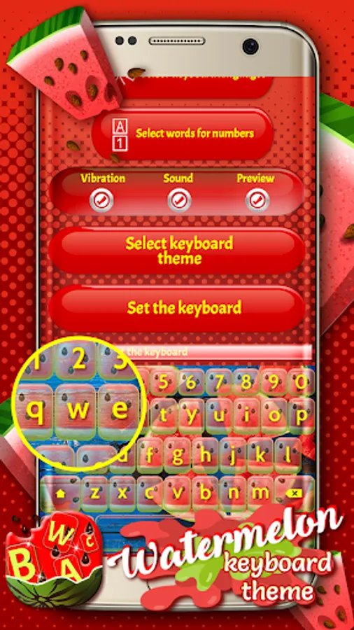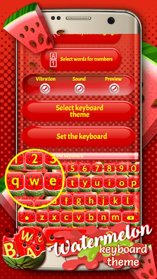 📷 All true text messaging fans will spend hours writing cute SMS and will definitely be thrilled with this virtual keyboard changer. Forget just for a second your backlit keyboard and frozen keyboard themes and try out our cute watermelon “keyboard app”. We assure you that this keyboard customizer is one of the best free apps that will help you customize your keyboard to your own taste. Choose your favorite watermelon image background theme and keyboard language and enjoy typing love messages to your sweetheart. All you have to do is 🍉 Watermelon Keyboard Theme 🍉, install it and start using it!