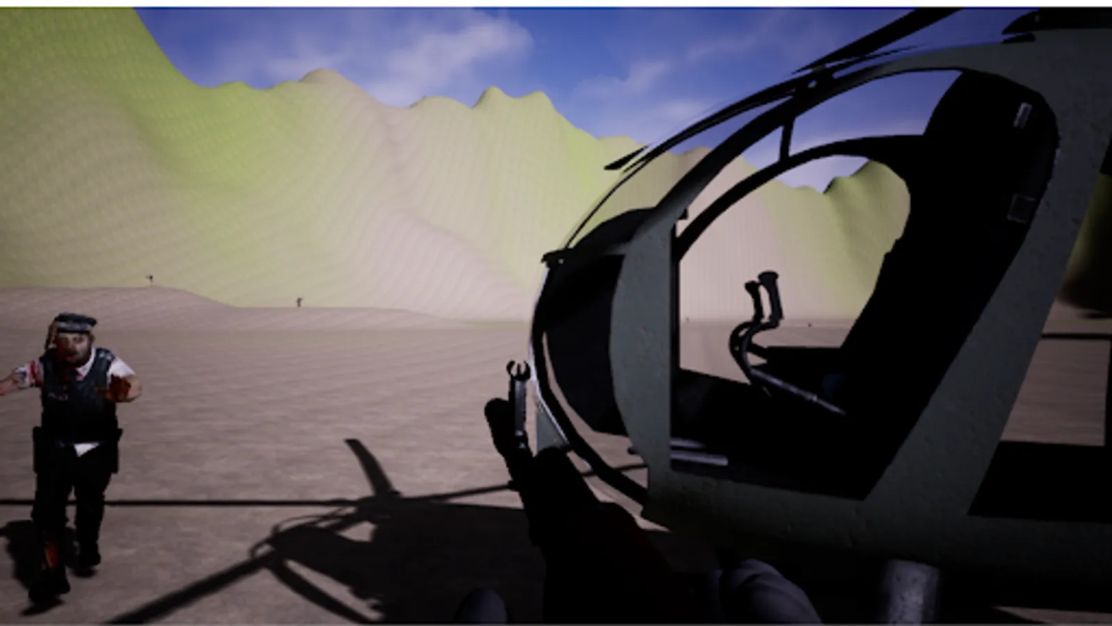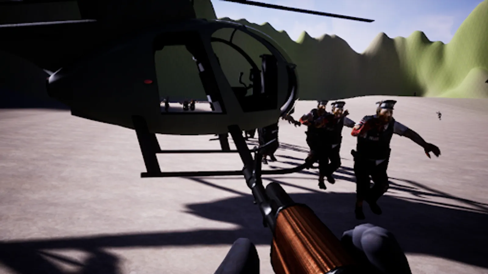 Player can run fuster, fly by helicopters.
