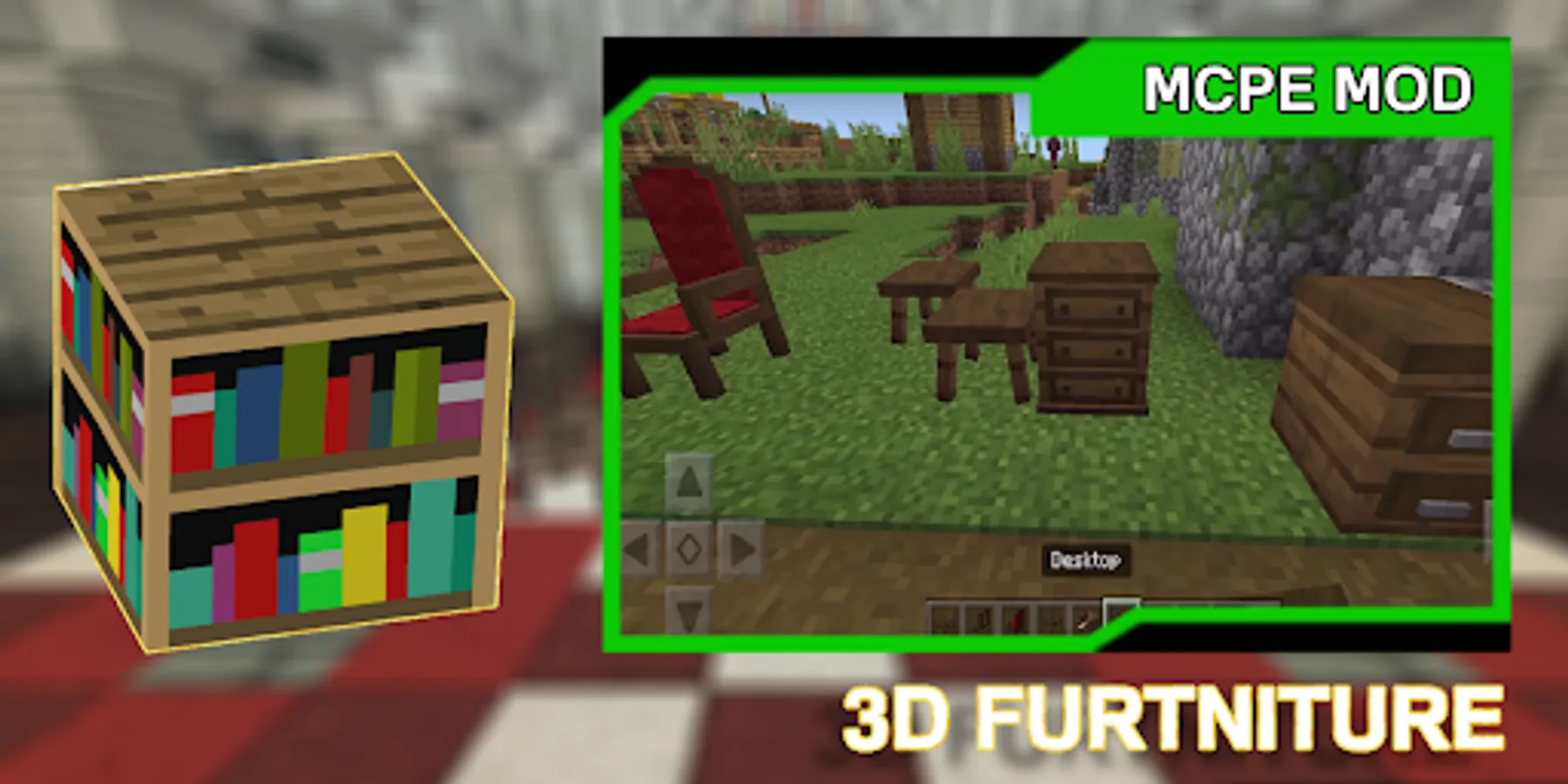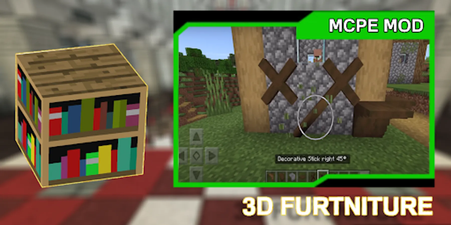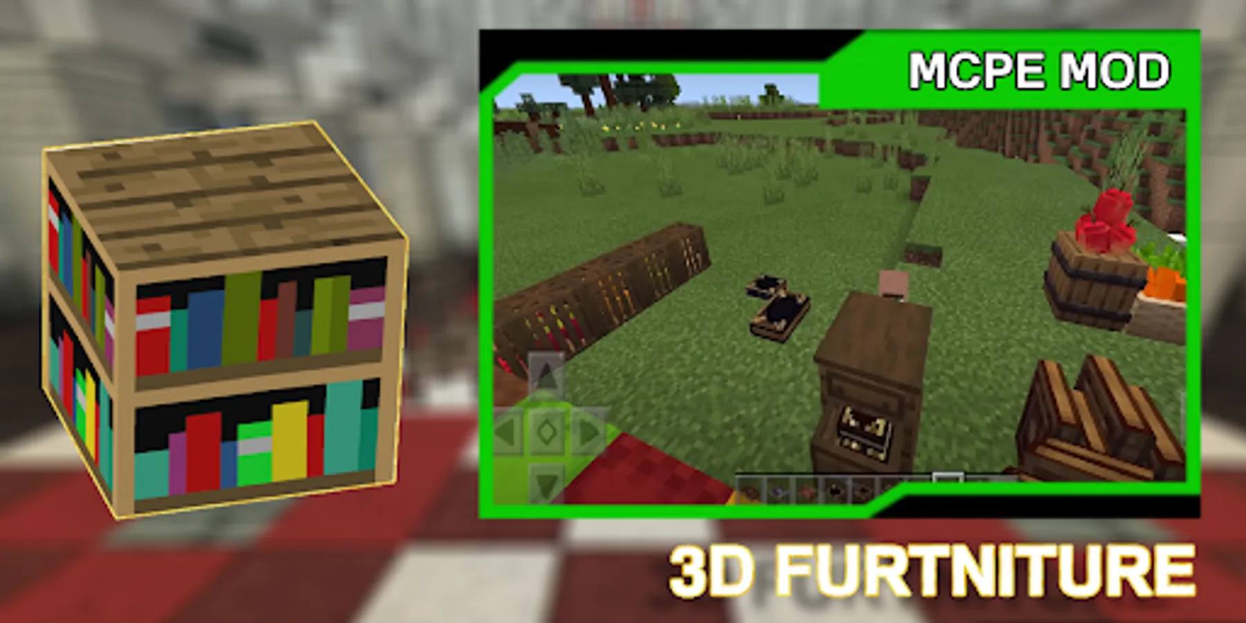 Stand out with the new furniture mod. Decorate your map, house, fortresses in a unique ancient style. Royal tables and chairs, wardrobes and bedside tables with animation when opening. Coasters and baskets with fruits and other food, a library with books, spectacular decorations for the roof of the house and inside it. This mod will help you make a real renovation and change the interior in your world. Ordinary gray stone houses, you can cover with a different color. A lot of crafting for new items. Possibility of building from wooden sticks at different angles. Added a special sword stand with a cool skin and armored doors that will protect you from various monsters. Transform your world in a new style with the 3D furniture mod and invite your friends for a fun game.