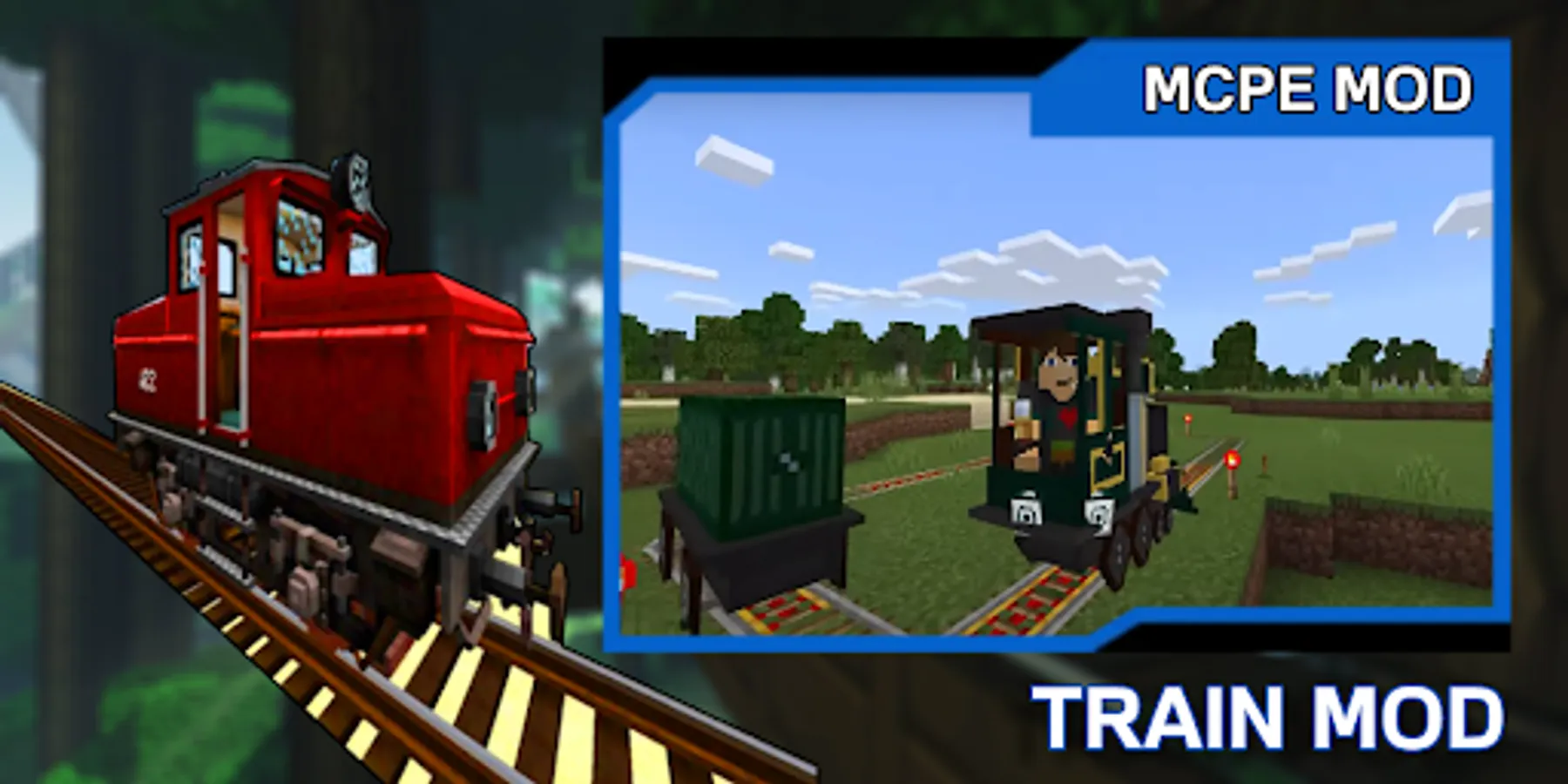 Download the free train addon to your minecraft world. In this mod, you will have access to recipes for crafting various types of rails and wagons. Create your own train station or even underground, add trains or locomotives from your inventory. Trains with carriages are very useful for transporting your resources around the map or just quickly moving around the world. You can control the transport of this mod, set the color, build rails and enjoy animations, skins of historical steam locomotives. Complete your game with a train, tram and electric train. The addon is suitable for playing with friends and those who like to travel along the railway tracks.
