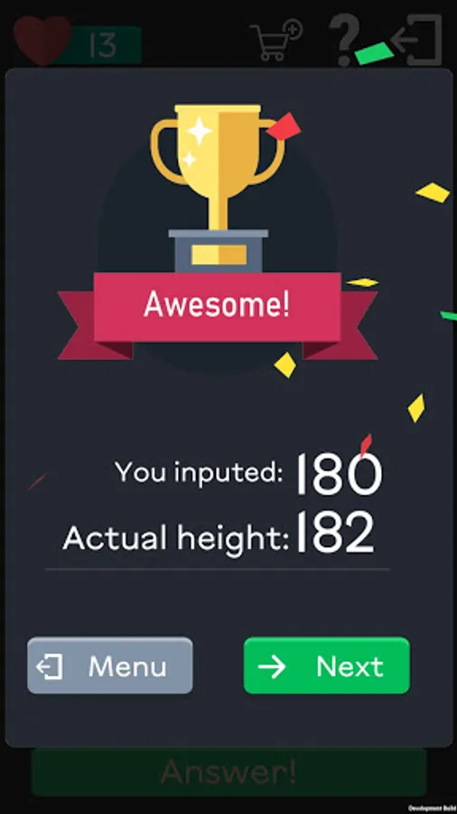 Can you easily guess the celebrity from the photo? Or the films they starred in or the music they wrote? How about guessing the height of a celebrity? For example, did you know that Leonardo da Vinci was 194 centimeters tall, and Daniel Radcliffe, who played a long time ago in the movie "Harry Potter" - is only 165 centimeters! In our game you can test your memory and demonstrate the unique abilities of your eye, guessing the height of celebrities from photos. You have about a thousand famous people from various categories at your disposal - music, sports, politics, cinema, art and so on! In addition, the list of celebrities is constantly growing, giving you the opportunity to learn more about the people you see every day on the Internet or TV!