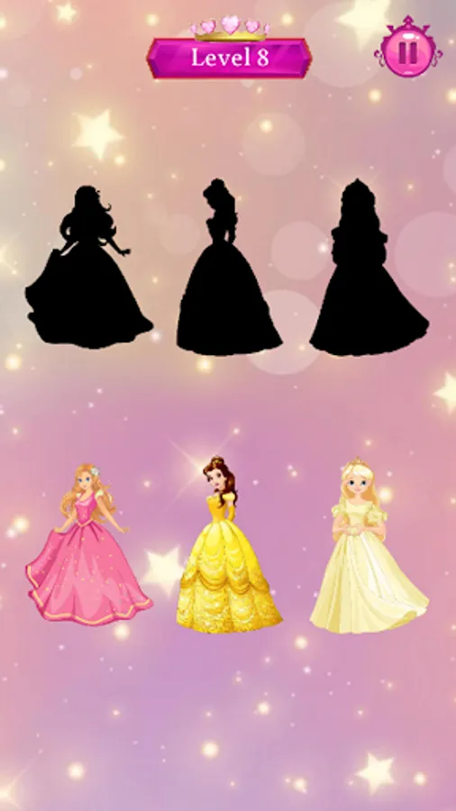Who wants to have a fun time! Princess shadow puzzle game includes educational games for children that will help to develop their physical, cognitive and emotional skills. This colorful puzzle game for kindergarten and preschool children is an important means of learning that can help enhance overall development of a child.