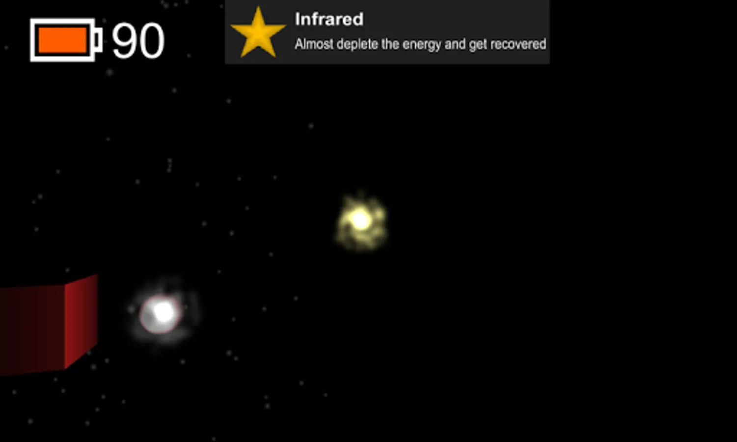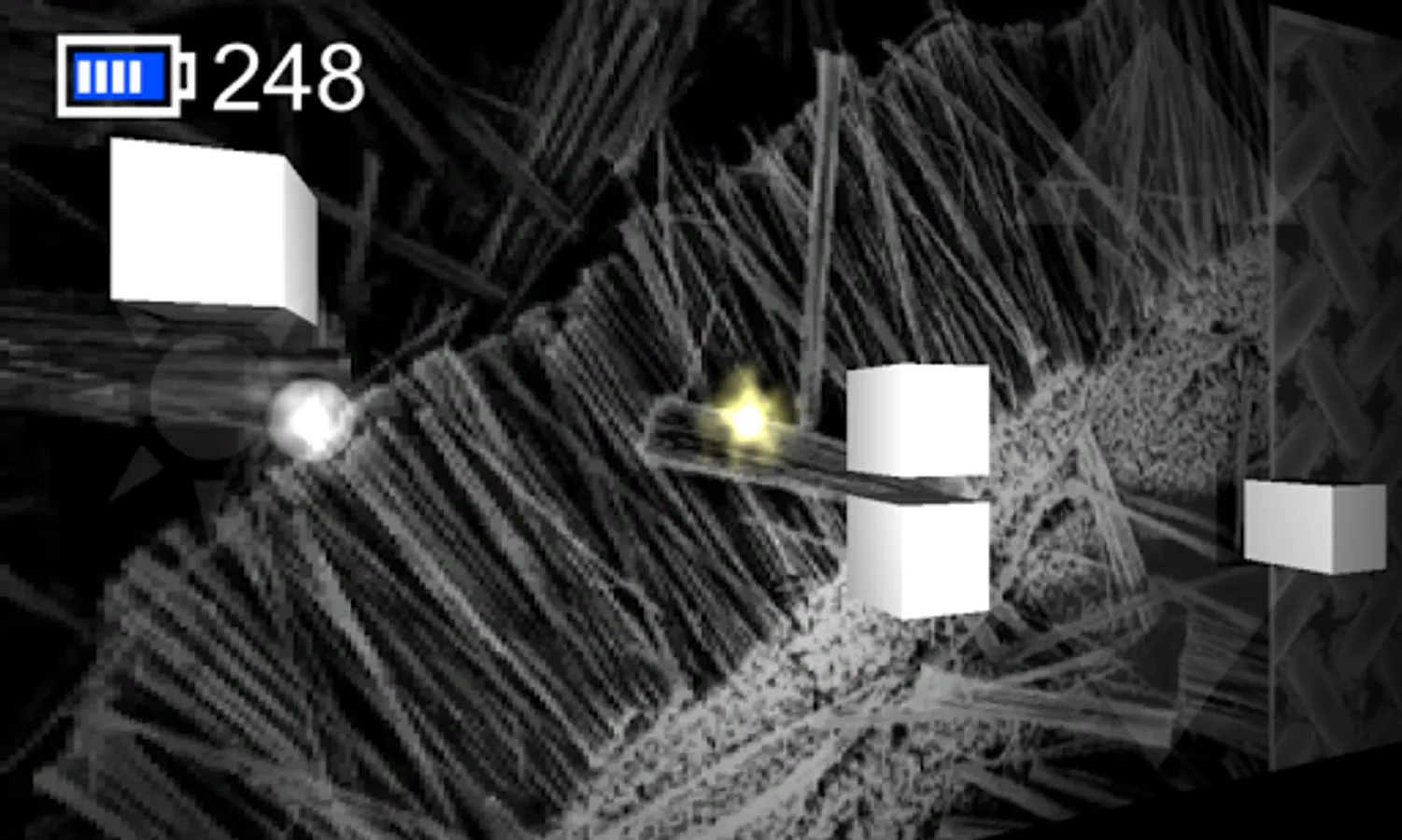 - Run to the infinite through the subatomic world, avoiding other particles to absorb you.