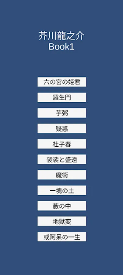 This application (Ryunosuke Akutagawa Book1) contains the following works by Ryunosuke Akutagawa.