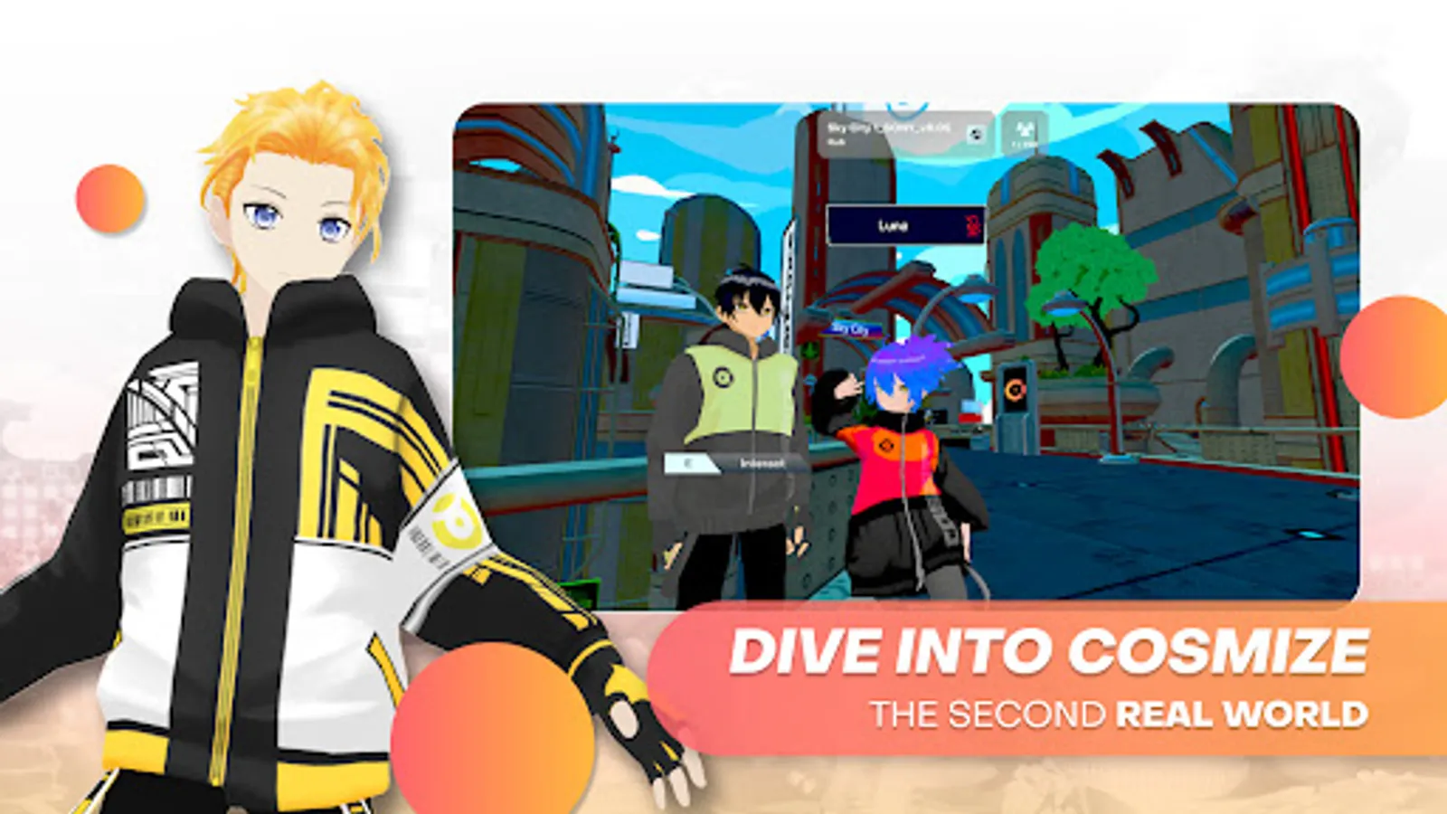 COSMIZE is a virtual social platform where you can talk to friends and participate in events. Here, people can use favorite avatars customized by yourself and enjoy the world of COSMIZE!