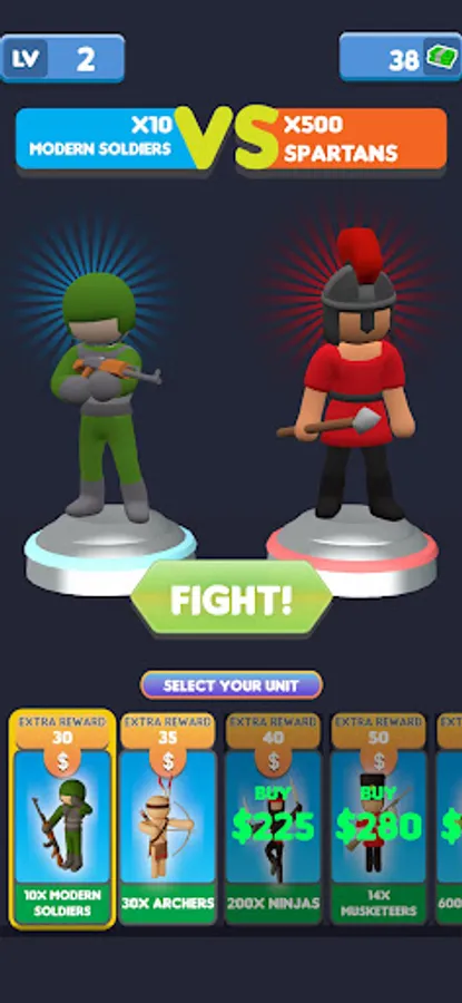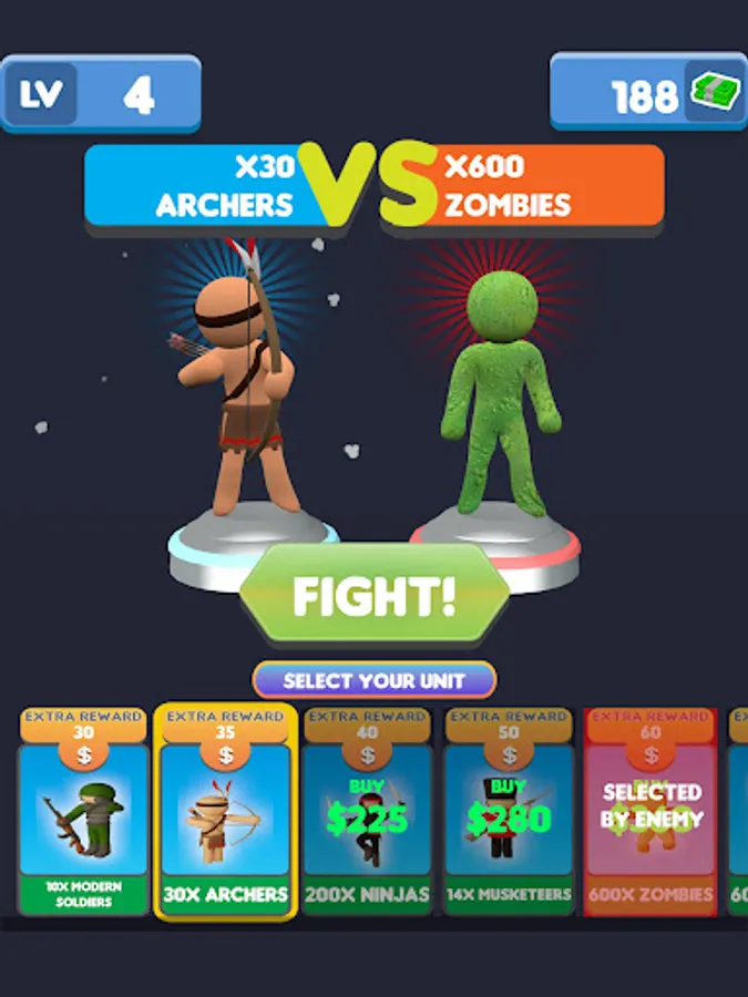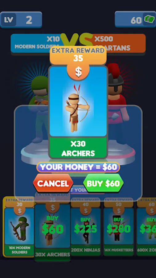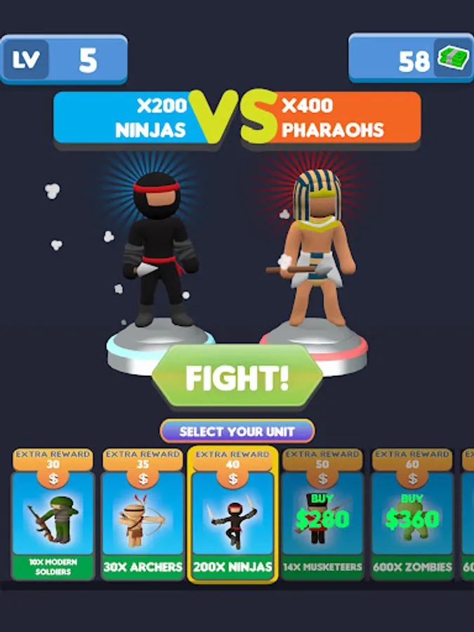 Play as an army of your choice ranging from Paraohs to Holy Knights, from medieval archers to modern soldiers, from ninjas to Romans against weirder and weirder, out of place enemies!