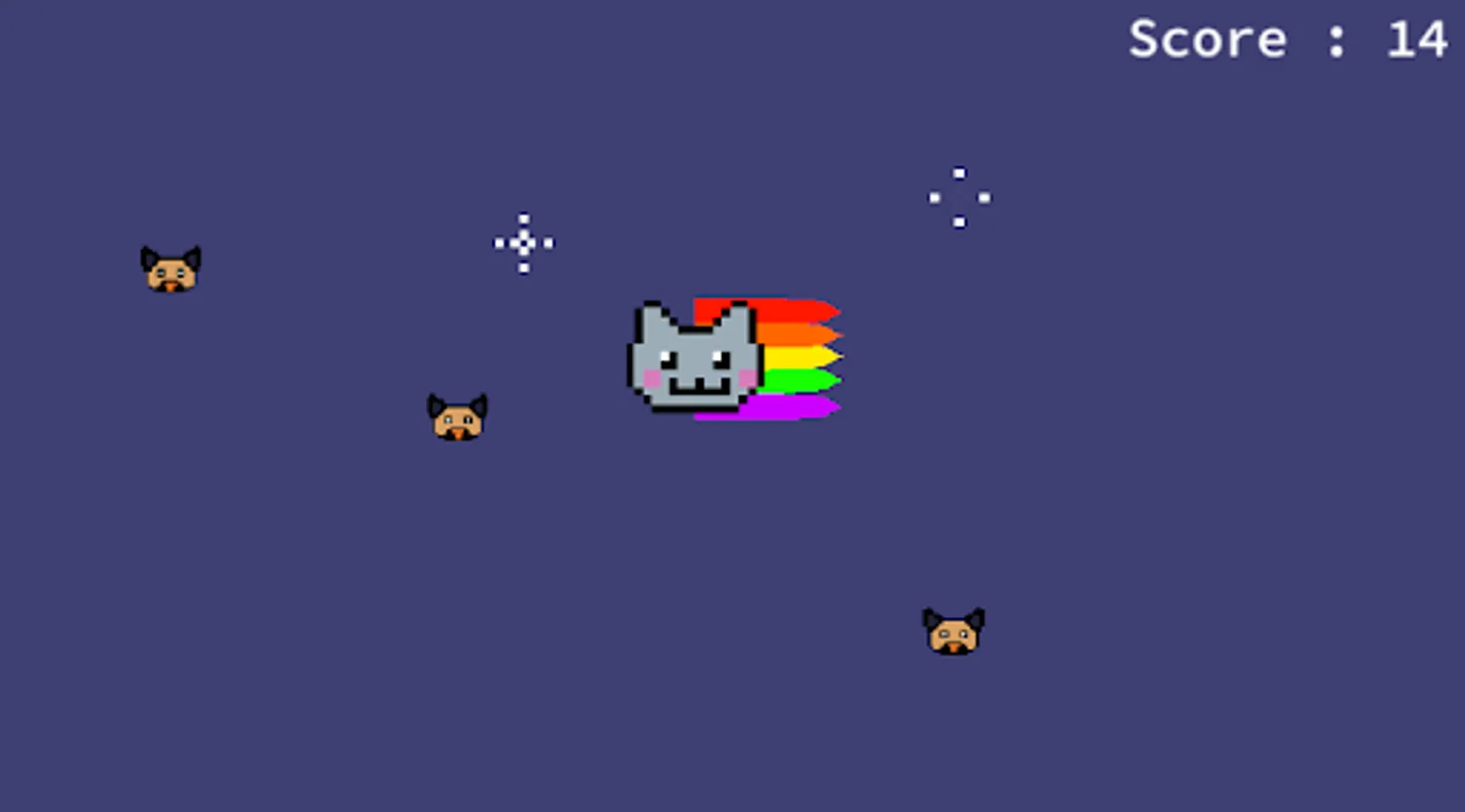 To make this game, I've set a constraint, the player can only use the space key to move around. The cat has a constant speed and moves either vertically or horizontally.