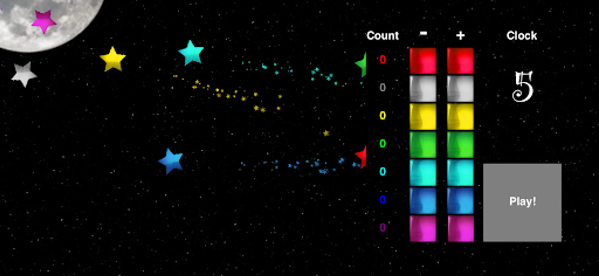 To play, count the number of leading shooting stars (the BIG stars) traveling in the galaxy.