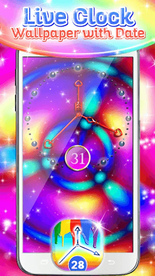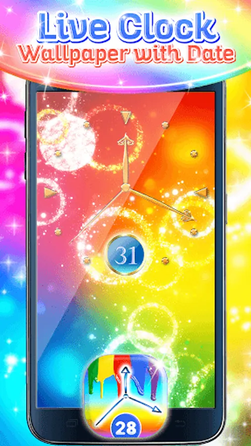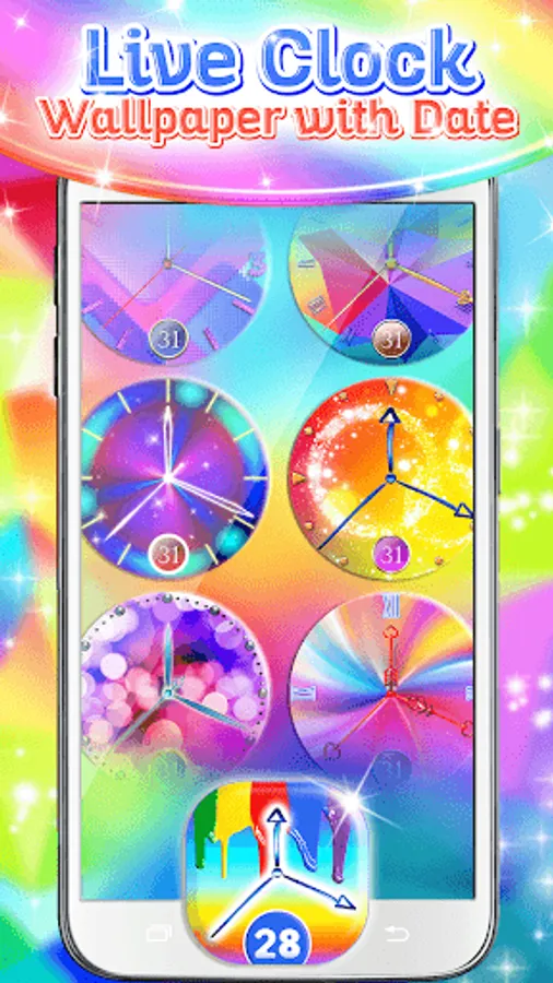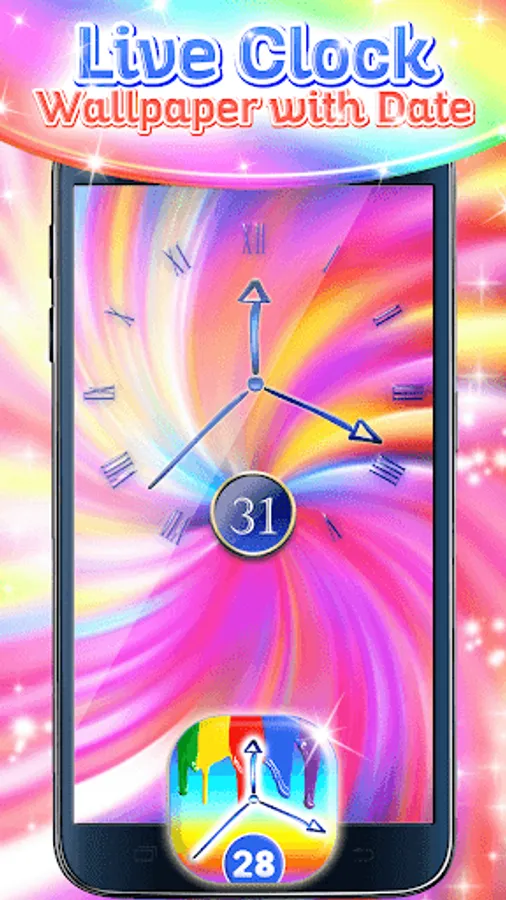 Get an amazing wallpaper that shows a clock in real time on your phone display! Download ⌚ Live Clock Wallpaper with Date ⌚ free of charge, set your favorite “live clock” and enjoy the beauty of these “animated backgrounds”! This cool “live clock app” will be very useful because the clock will be always on your display, but it is also a fantastic way to turn your old home screen background into a stylish “world time clock” wallpaper. From now on, when someone on the street asks you what's the time, you can proudly take out your new “clock on home screen” gadget and amaze everyone with awesome watch skins on stunning “moving backgrounds”. So, don't wait anymore, embellish your phone with our “live clock widget” and then share it with your friends on all social networks!