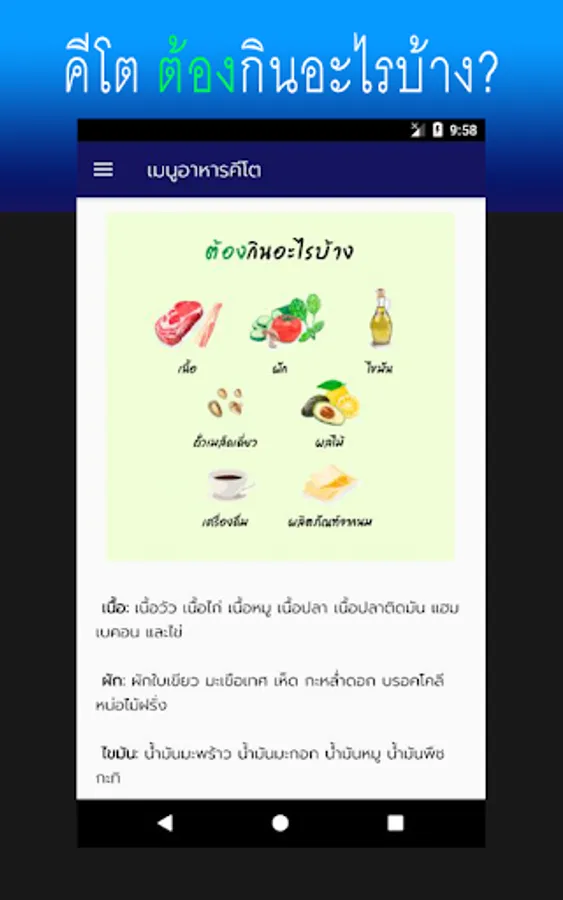 Keto Diet Menu This app will provide an introduction for anyone interested in starting the keto diet. In order to have a good experience in eating properly and getting good results.