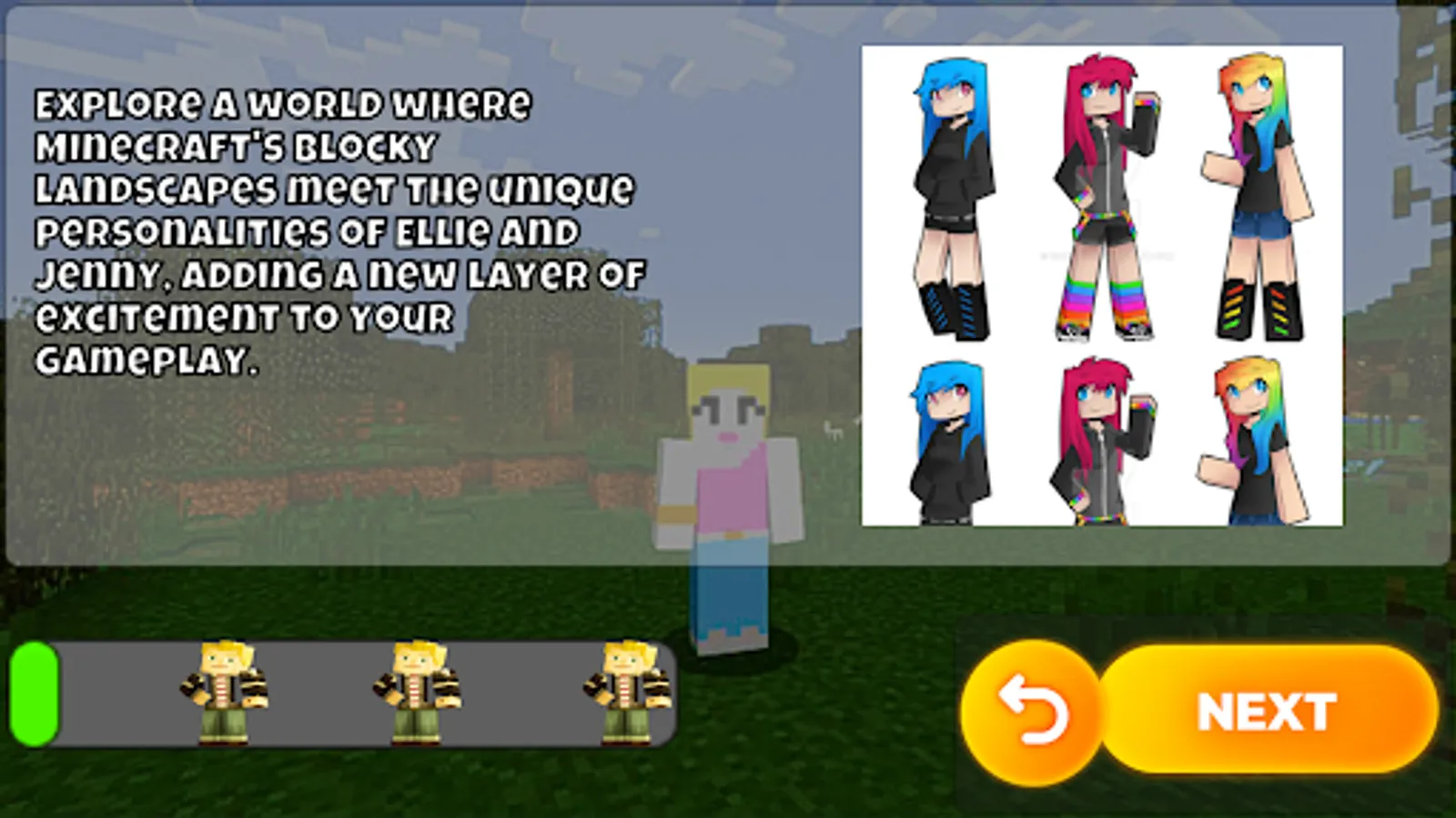 👚 Customize Your Experience: Experiment with a range of female Minecraft skins, allowing you to customize Ellie and Jenny to suit your style.
