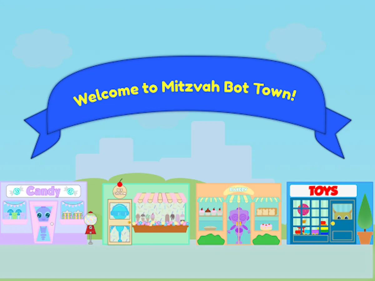 Welcome to MitzvahBotTown! There are stores to visit and games to play, all to teach children crucial skills.