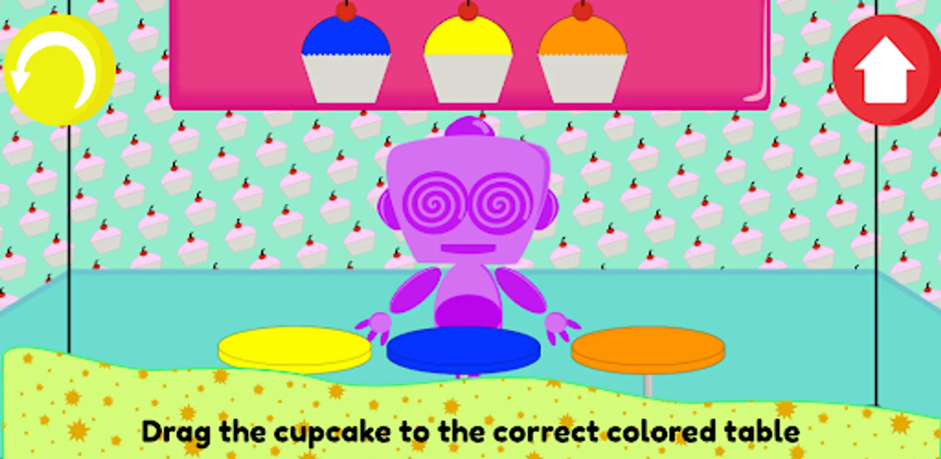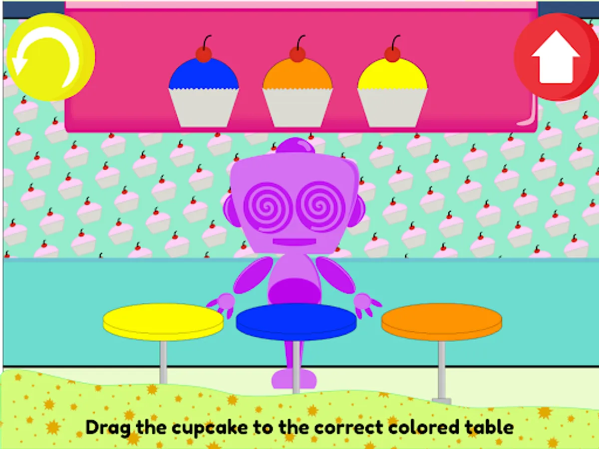 - Drag the cupcake to the correct colored table