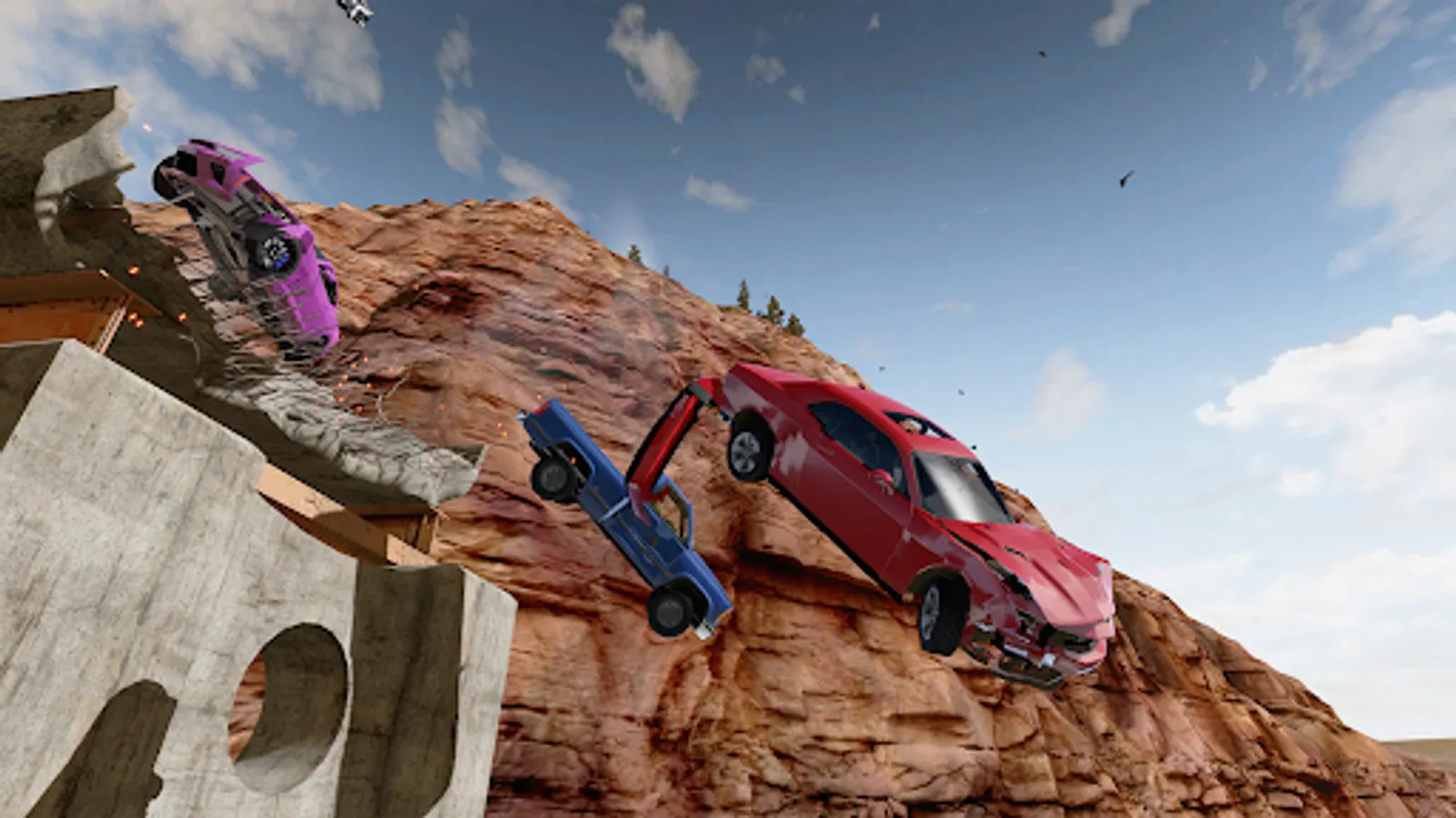 Realistic graphics and 3D physics of body damage. Wreck your vehicle and watch it disassembly! The hood, doors, trunk and even wheels fall off from it! Enjoy a crash test wherever you are: on a plane, train, at school or at work.