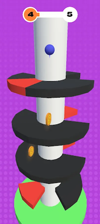 Press and hold on the screen and let the ball go down without touching the obstacles! Hold as long as possible to make combo and break the black blocks. Let the ball fall down from the helix stacks.