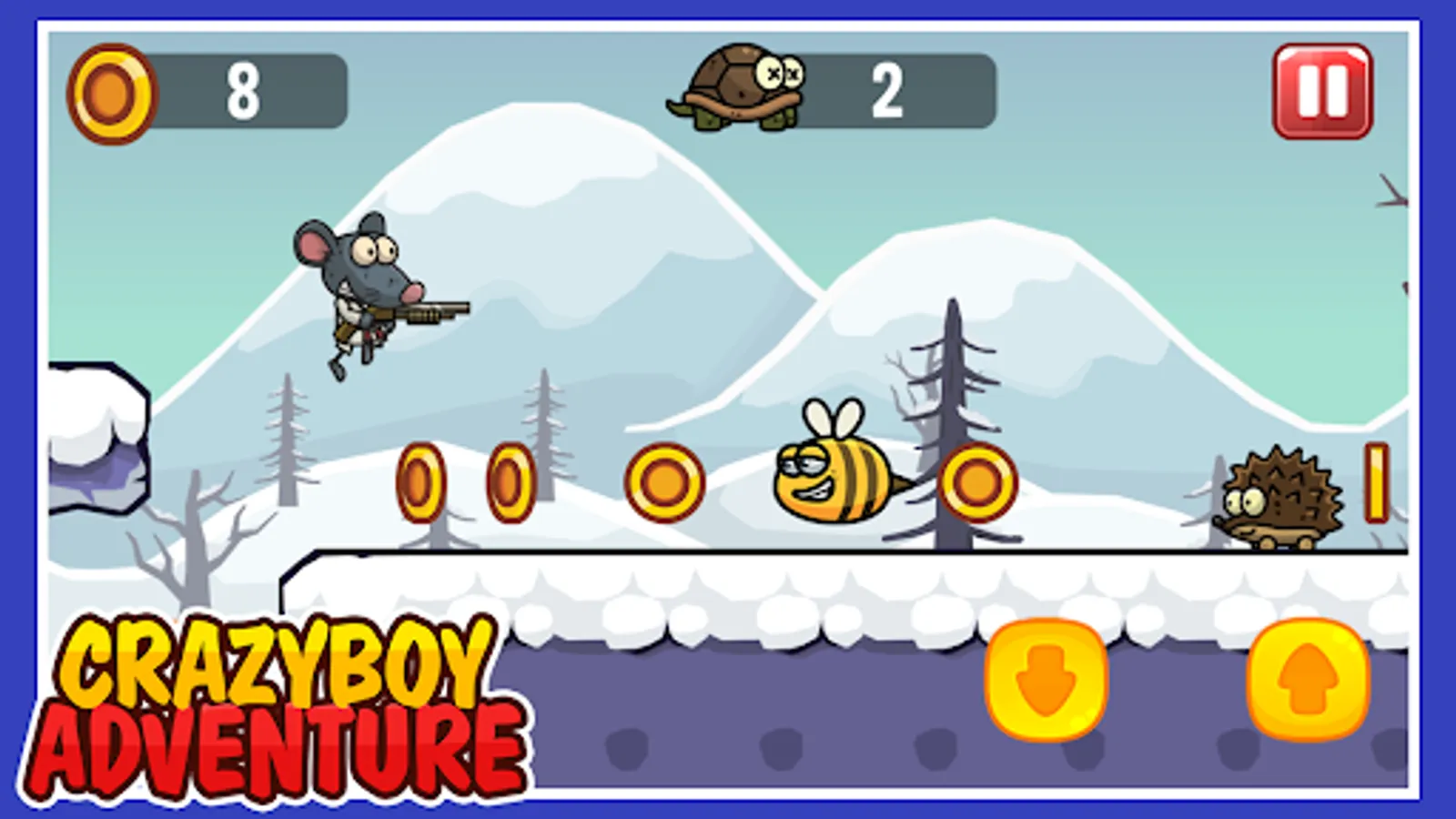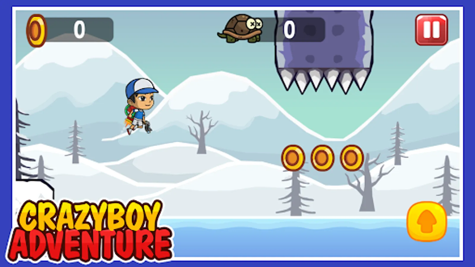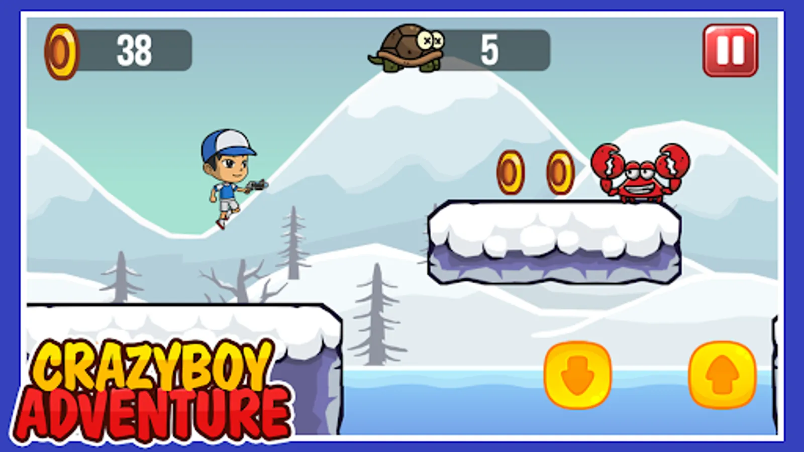 CrazyBoy Adventure - Choose between 25 Heroes and Eliminate the enemies, Run, jump, slide and use the gun to blast the evil animals that you find in your way, collect coins and use them to get more awesome heroes, play in the snow world and get the best score!