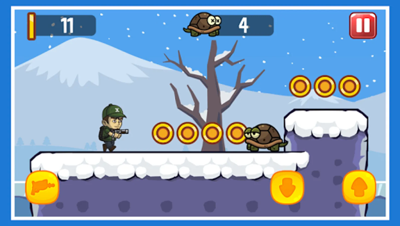Metal Shooter: Run and Gun is a game about run and gun 2D shooter action game originally. During side view stages, player can shoot leftward or rightward while standing, as well as horizontally while walking. Auto-Shoot function is recommend.