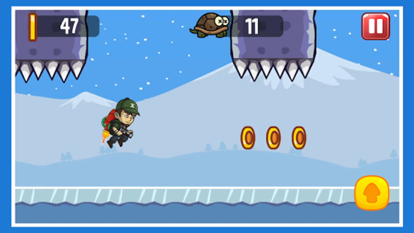 When that happens, you will revert to his default weapon on his next life. When you kill an enemy, you will get some coins so after losing all lives, the player can continue by inserting more coins or watch videos.