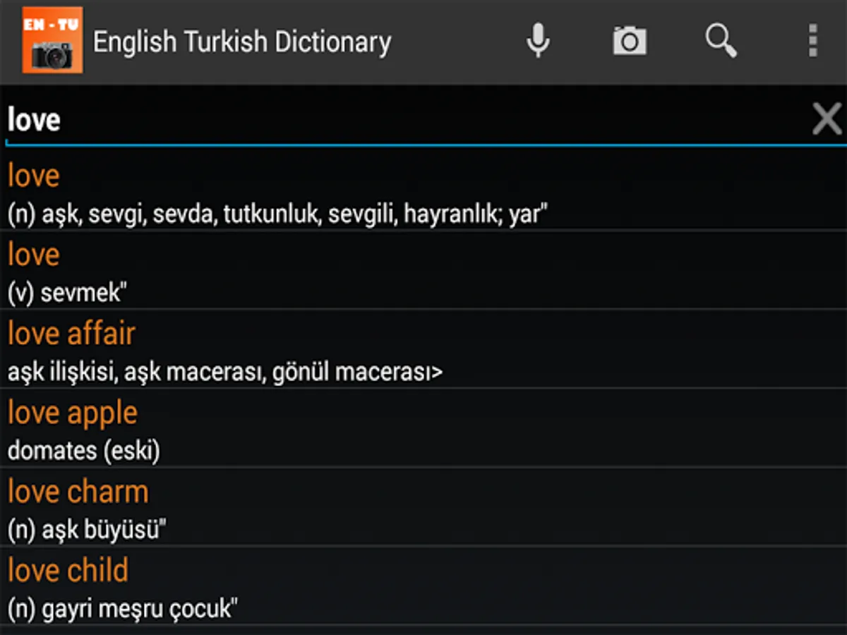 The English Turkish Dictionary is easy dictionary, it covers over 80,000 words and phrases