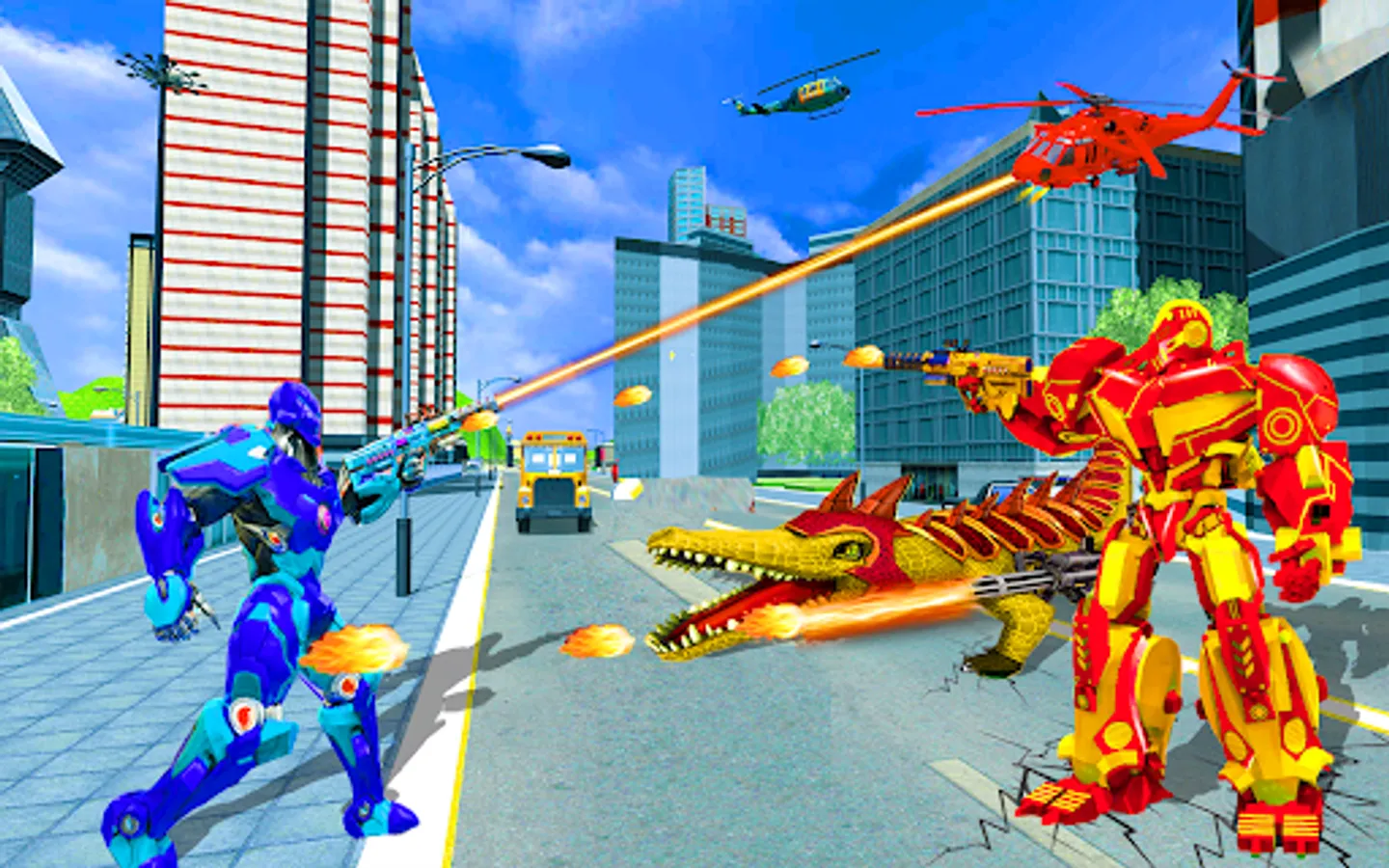 Get Ready for robot war in legend robot game the robotic city is under attack by gangster bike robots and grand gangsters robots only the true fighter can fight against them in real car robot shooting games. Crocodile animal robot game is the best robot shooting game for futuristic robot wars in gangster alien robot city. If you like transformation games to play muscle robot car combos with superpowers ability in superhero robot games & fight epic battles then get robot car simulator game for free. Transform into sports car in robot wala game and drive in futuristic city of flying car robot games, drive motorcar and perform car stunts with mega robot war games 3d. What are you waiting for? Let's start this transform game with real time robots transform fight and complete impossible mission in strategy game with unlimited fun wars. Defeat real steel robots and mech robot with transform skills!